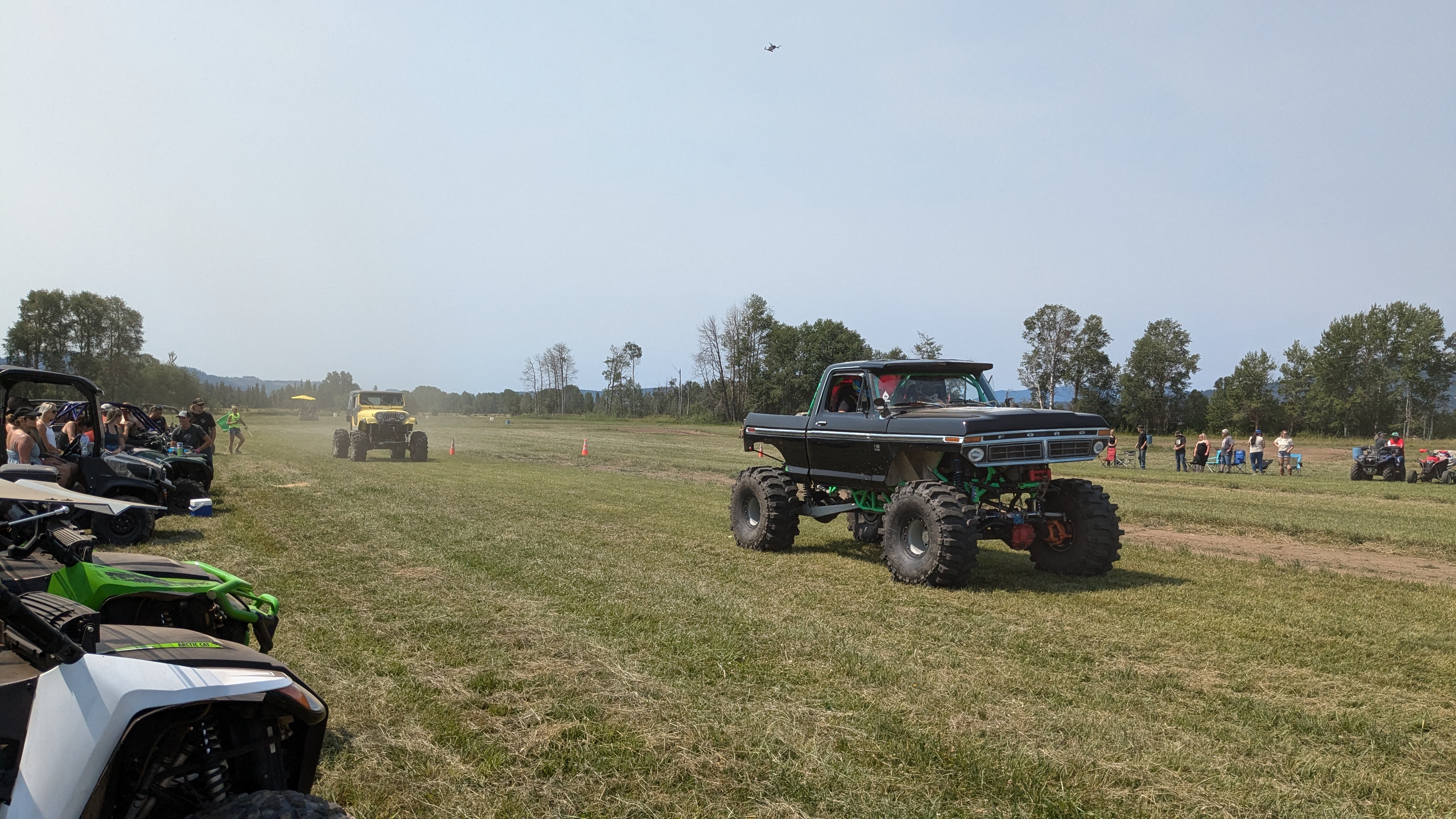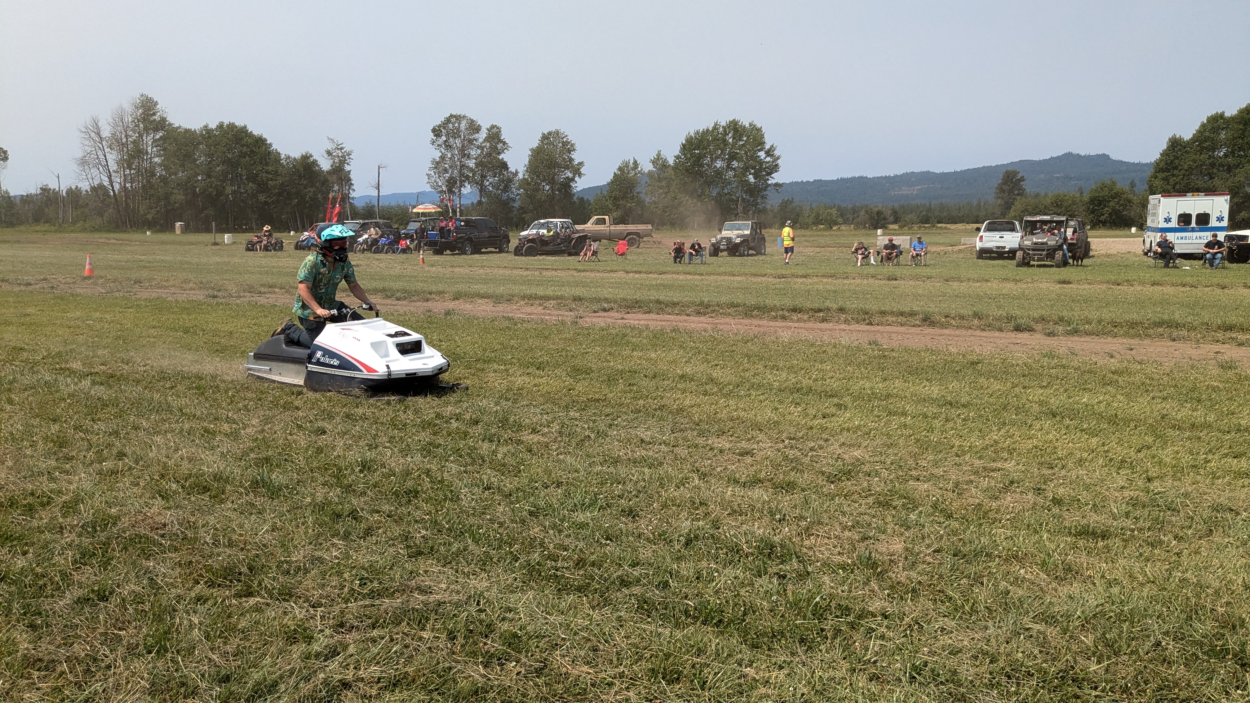 Speaking of all the mud, we attended the local Mudfest event this year. It was more of a dust fest, complete with drag racing on dirt lanes. Yes, that is a snowmobile.