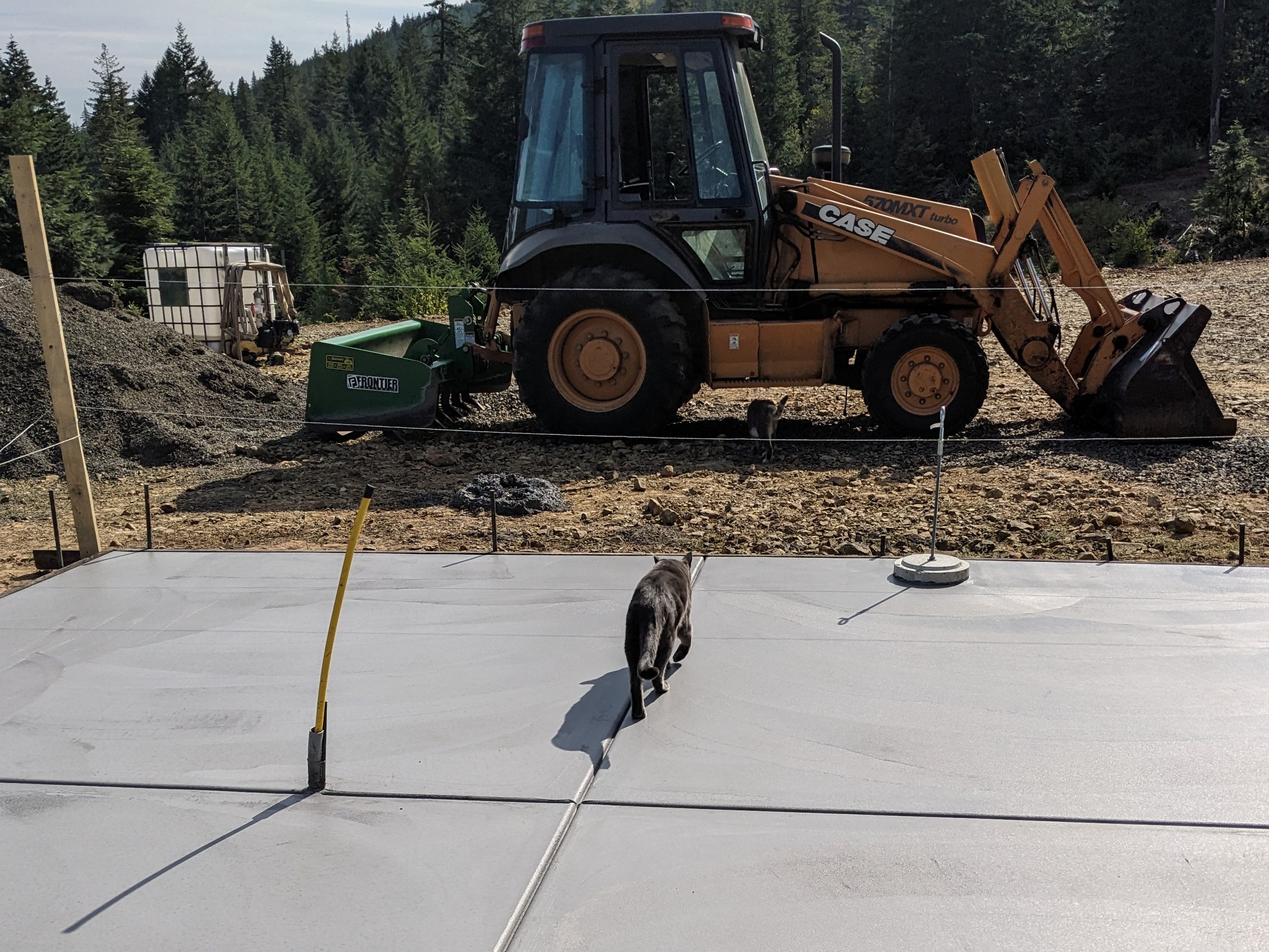 I tried to get the cats to defend their new catio, but they preferred to sit in the shade under the loader. I’m sure they’ll take over once we have a roof and some cushioned furniture.