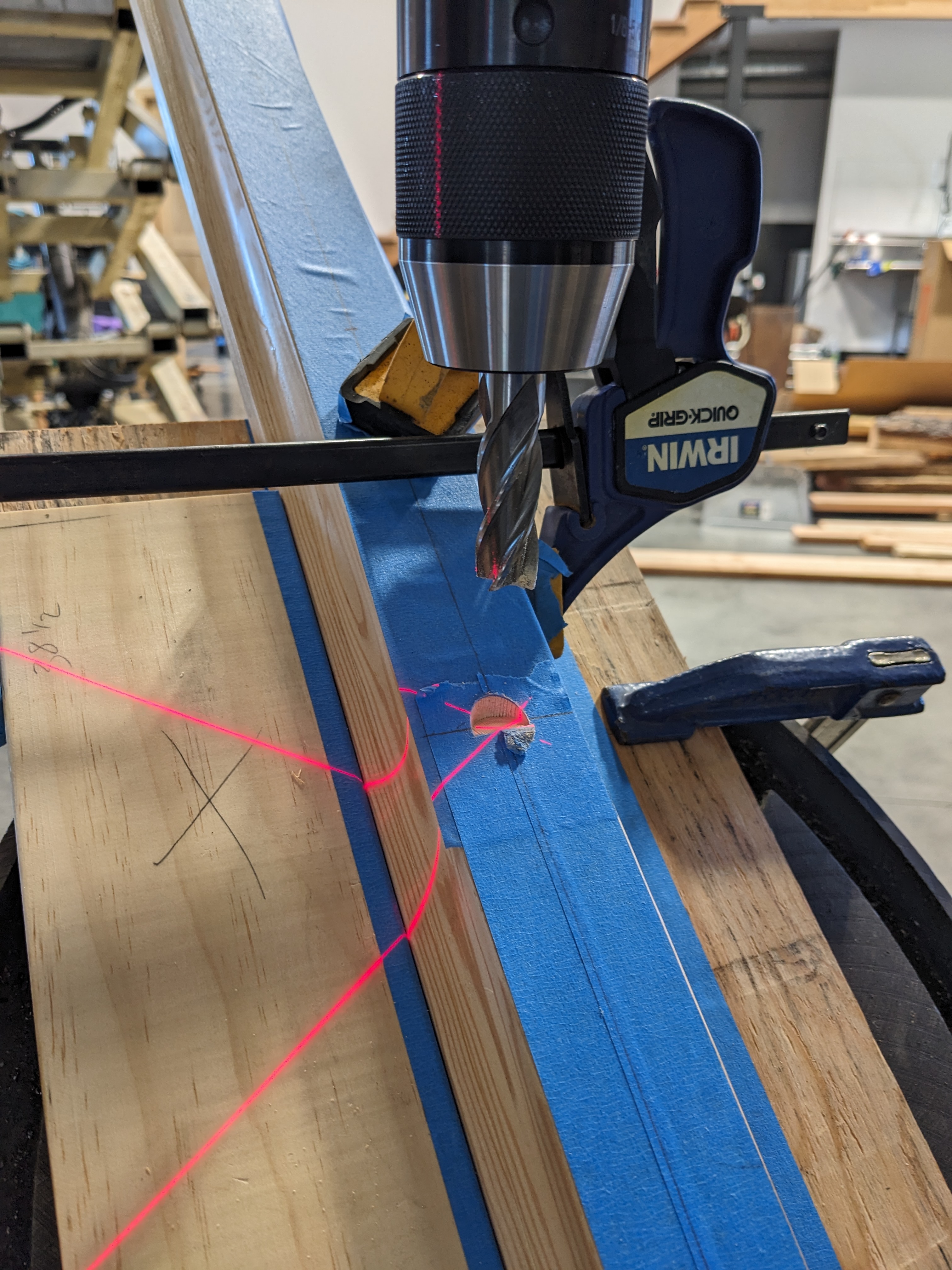 This extra step wasted a lot of time, so Sam ordered a larger forstner bit before drilling the lower section of stairs.