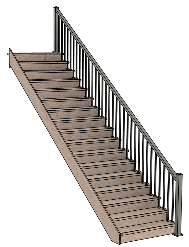 Next, we figured out the baluster layout. The spacing was governed by the minimum gap per the building code. From that number as well as an aesthetic perspective, we determined where to place them on the stair treads. We added the layout to our CAD model to confirm we were on the right track. There are two balusters per stair, with an alternating pattern of plain and twisted ones.
