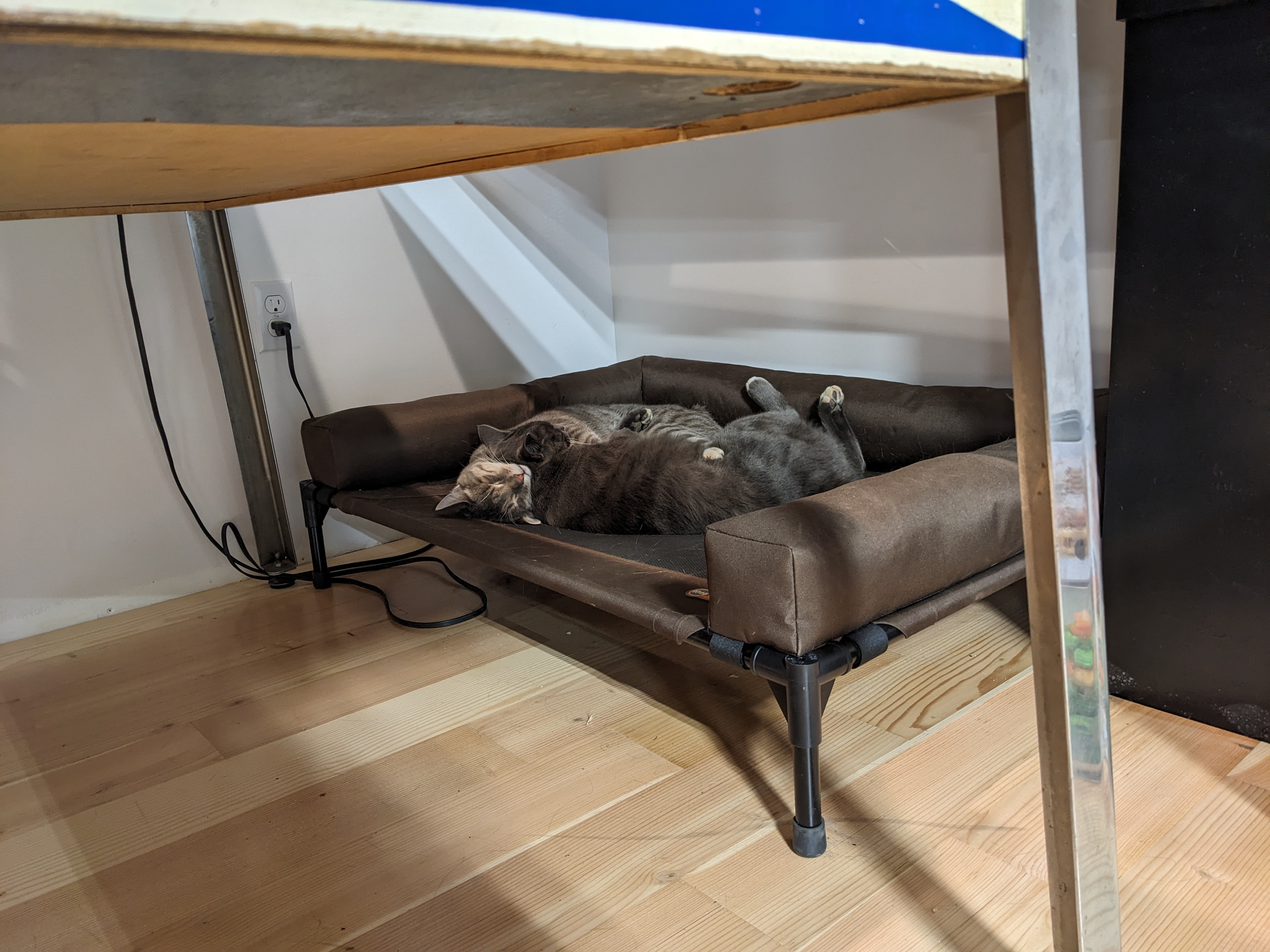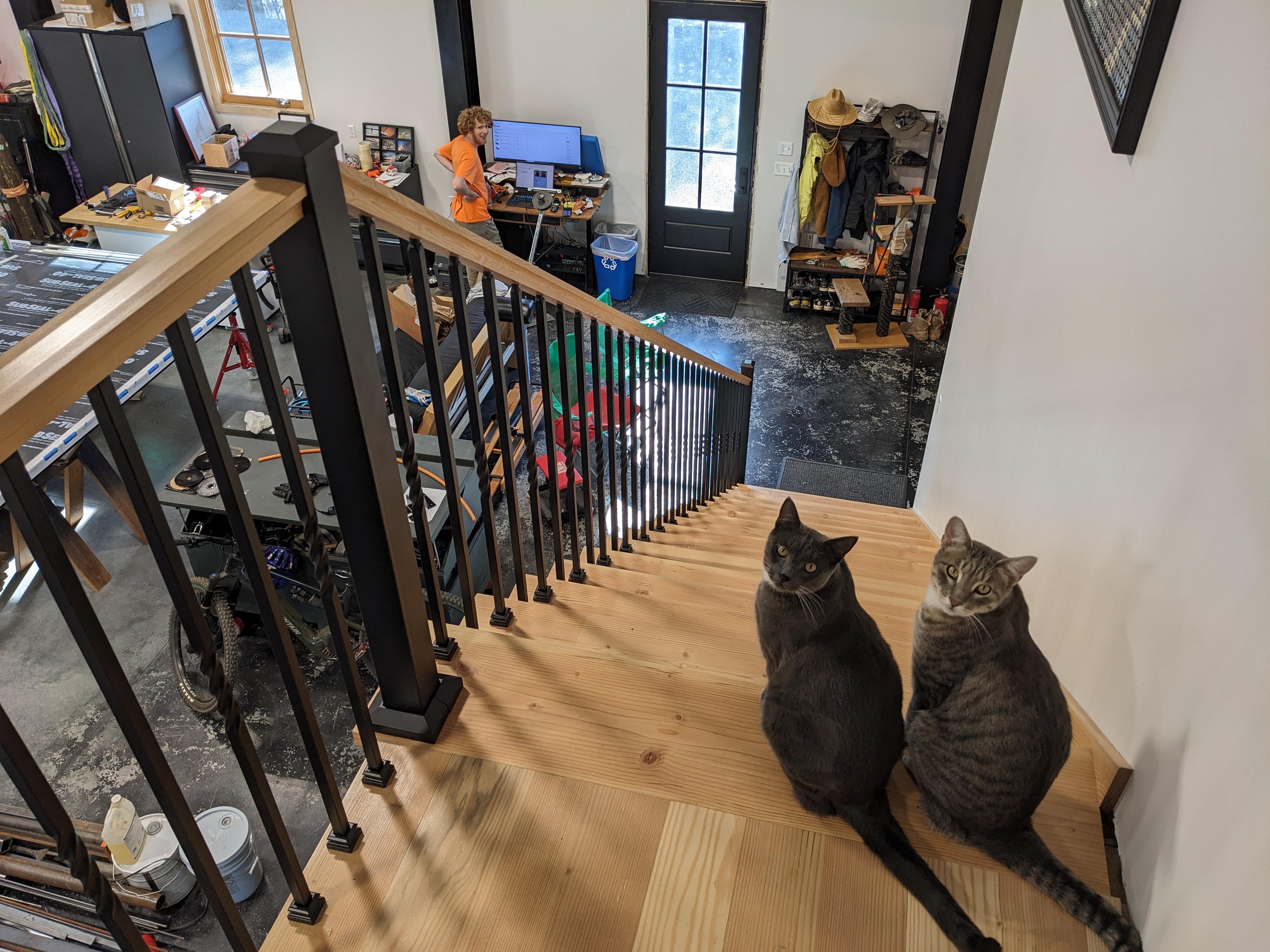 The cats love the railing too. They immediately started using their neglected bed upstairs. Buster is ecstatic that the protective paper is finally gone- he no longer has to tiptoe down the edge that the paper didn’t cover. Smokey, being afraid of heights, feels much safer with the railing.