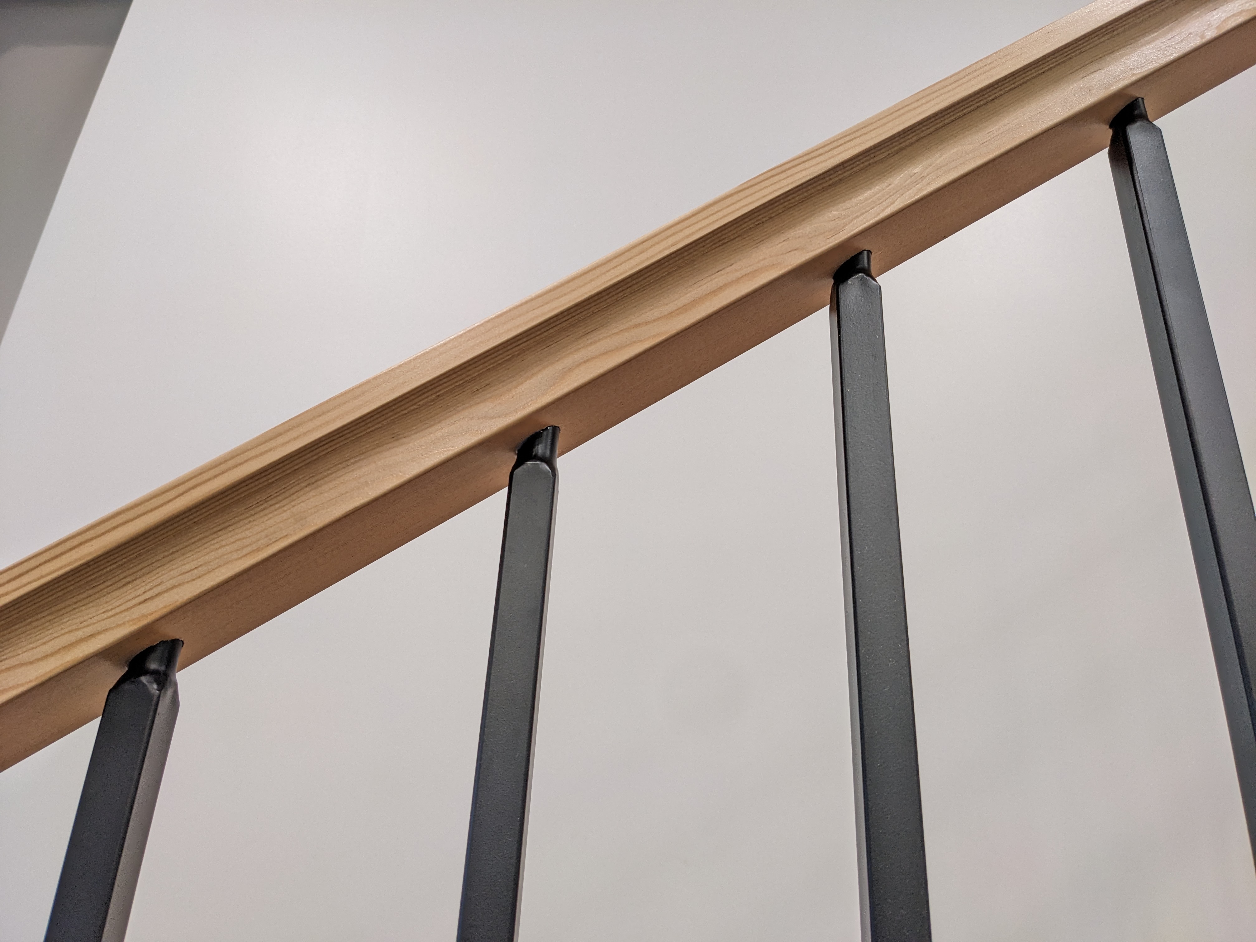We had to mark the same locations along the handrail. We carefully cut the handrail to length, angles included.