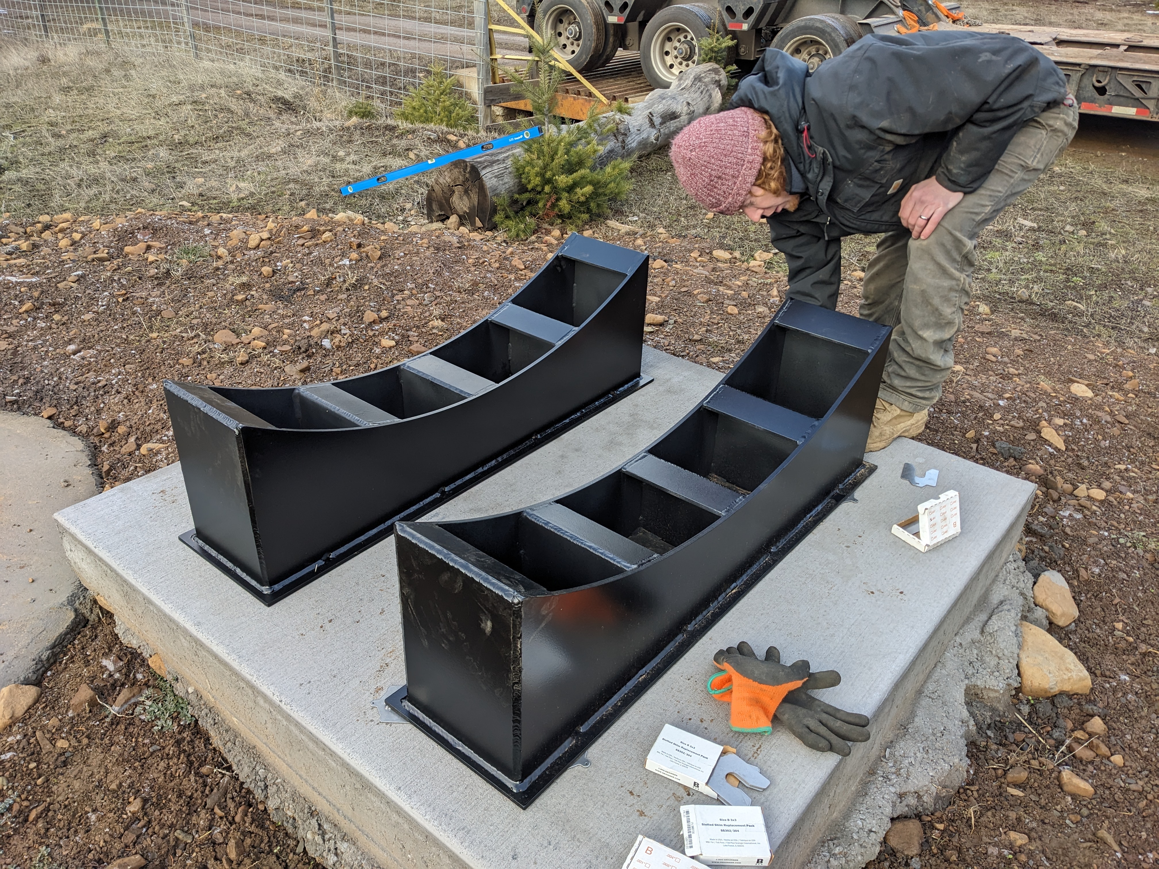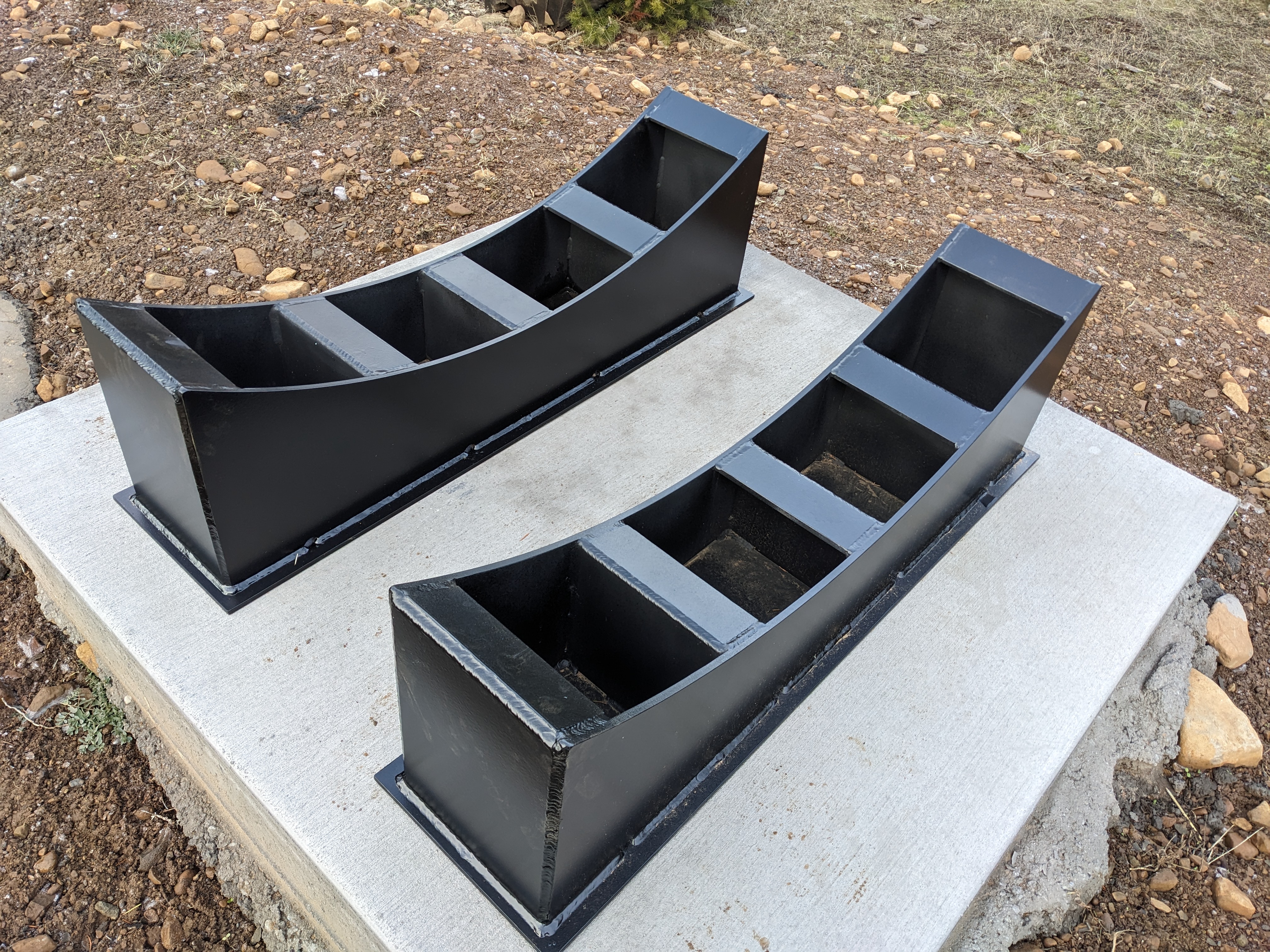 This gave Sam and I plenty of time to figure out what to do with the thing. We decided to display the valve in its horizontal position, resting on cradles. Sam made two cradles out of steel and painted them black.