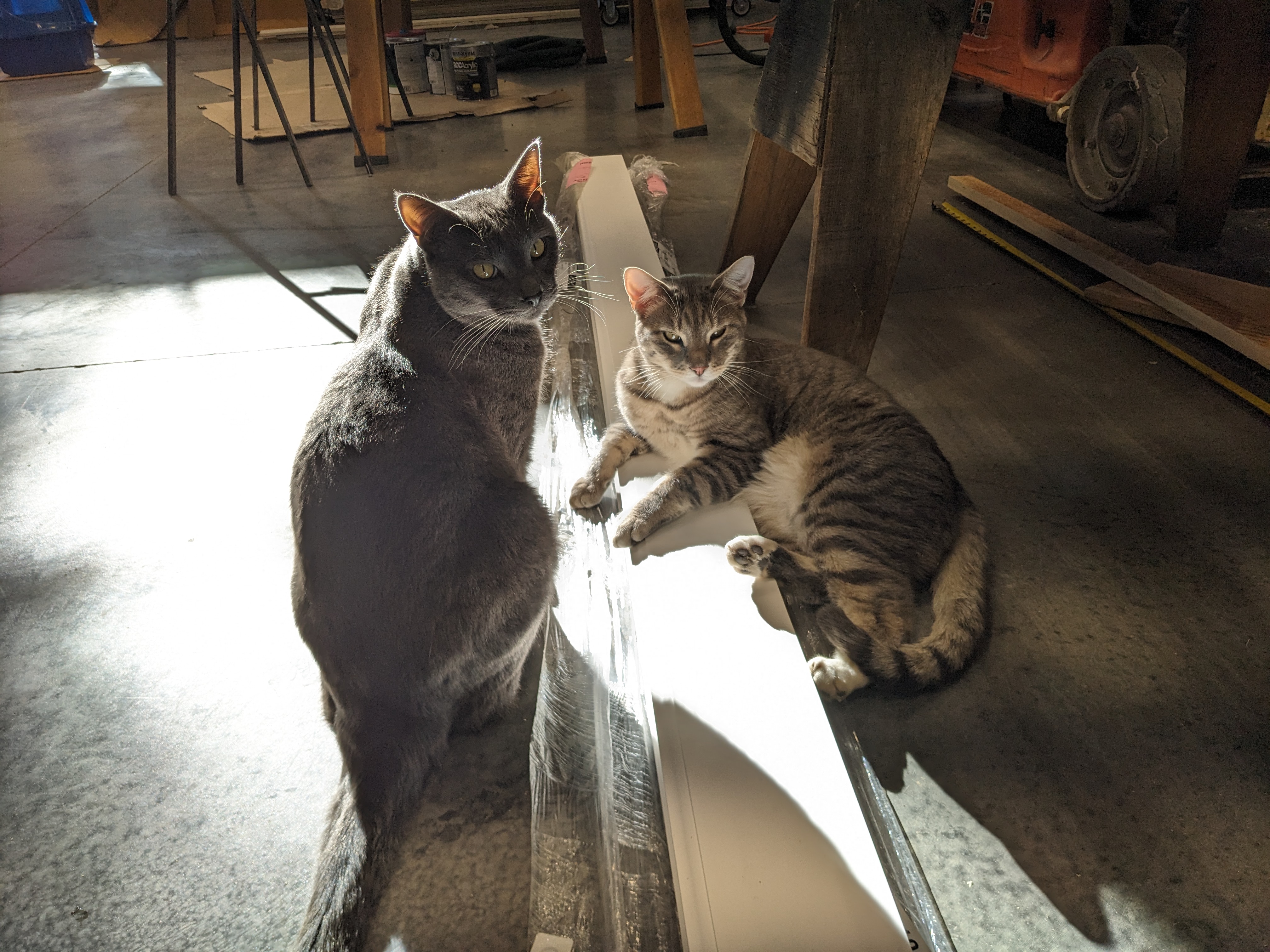 Since the floors aren’t flat, Douglas used his track saw to cut a matching profile along the bottom edge of the baseboards. He often had to go back out to his saw a hundred times to fit a long board. I was glad I wasn’t involved. My main job at this point was to grab Buster every time he snuck into the living room. He would pretend to be asleep and then take advantage of the unlocked door whenever Douglas exited. (The cats can’t be trusted during daylight hours, so we normally keep the door locked and invite the cats in at night to watch TV.)
