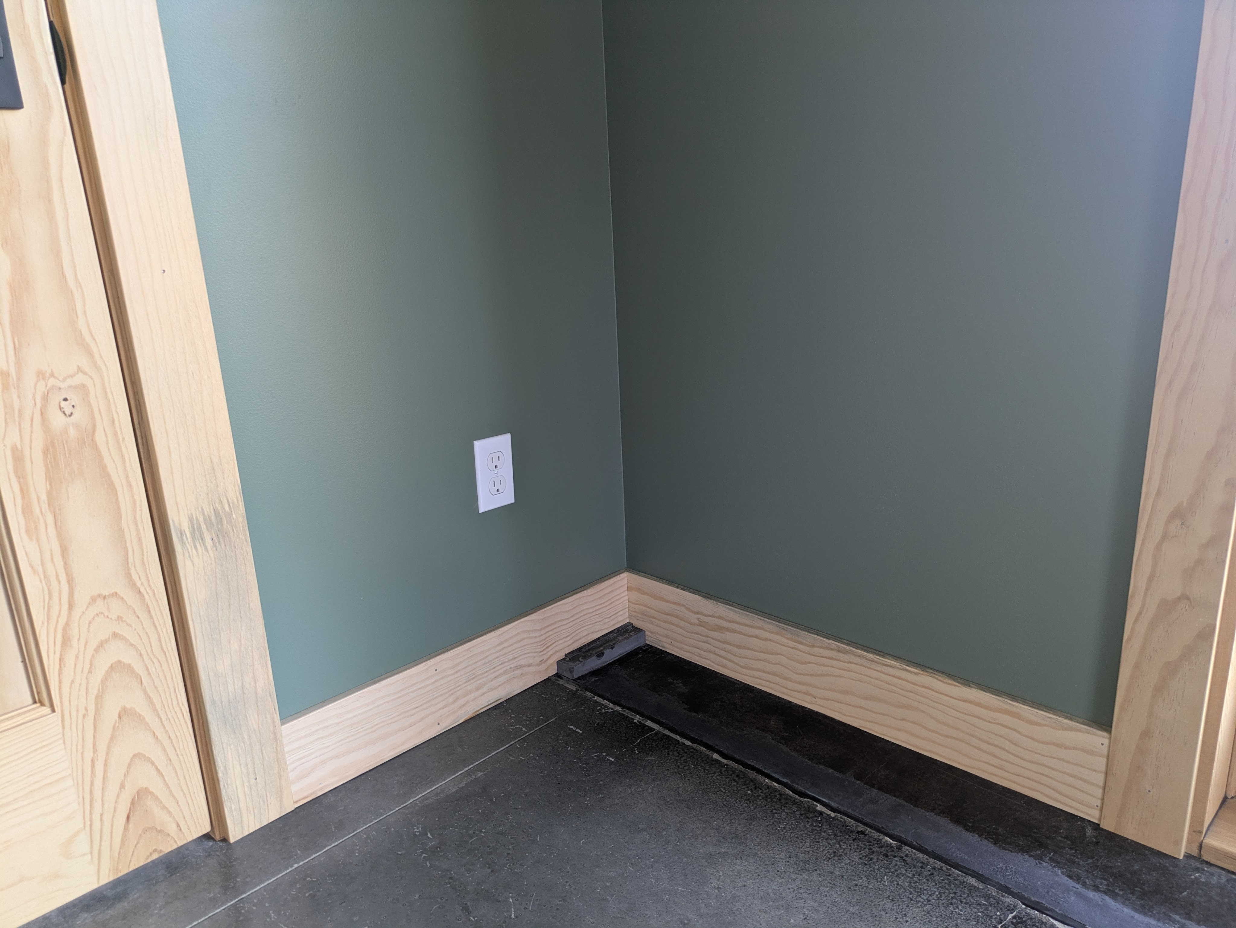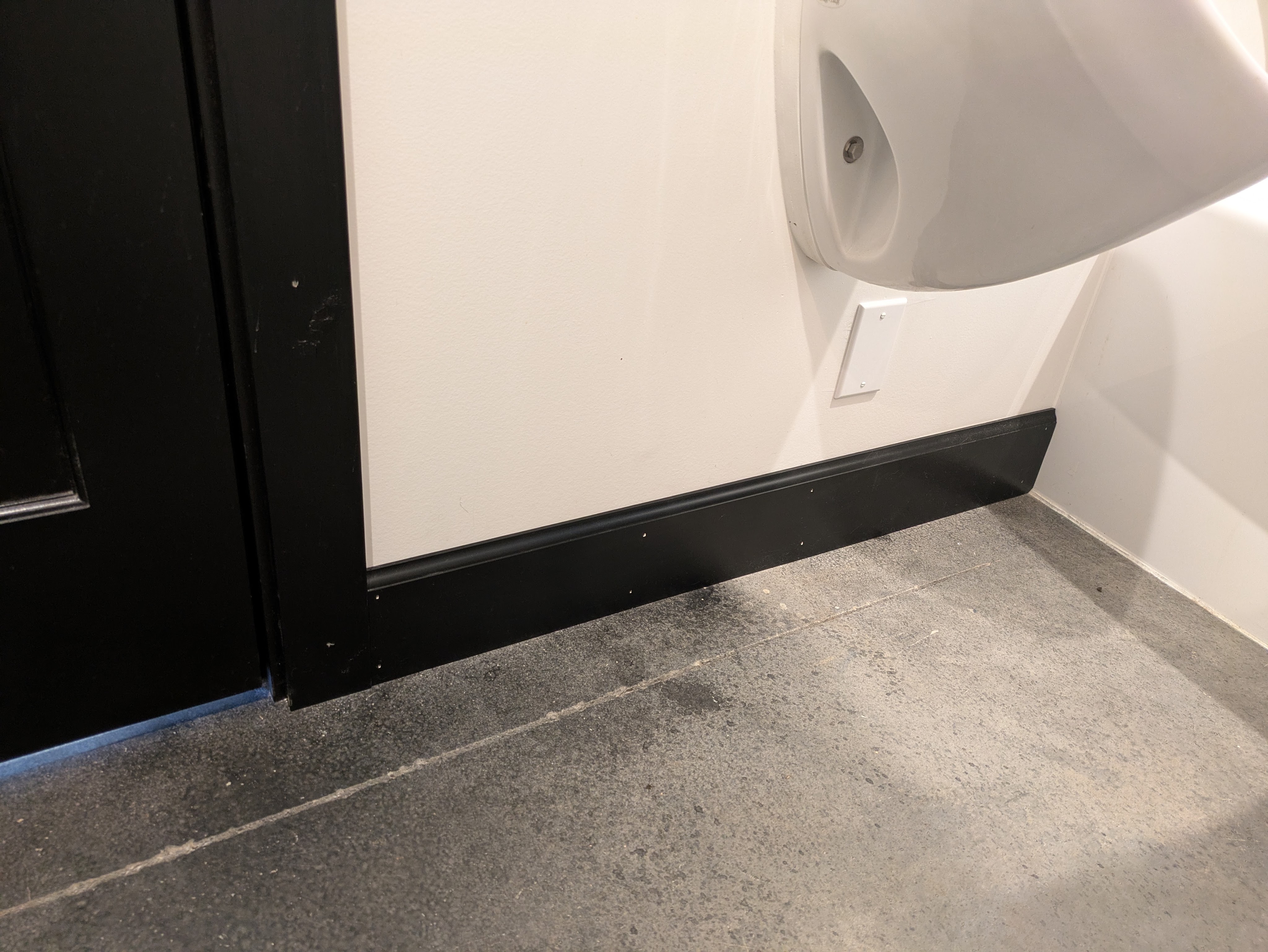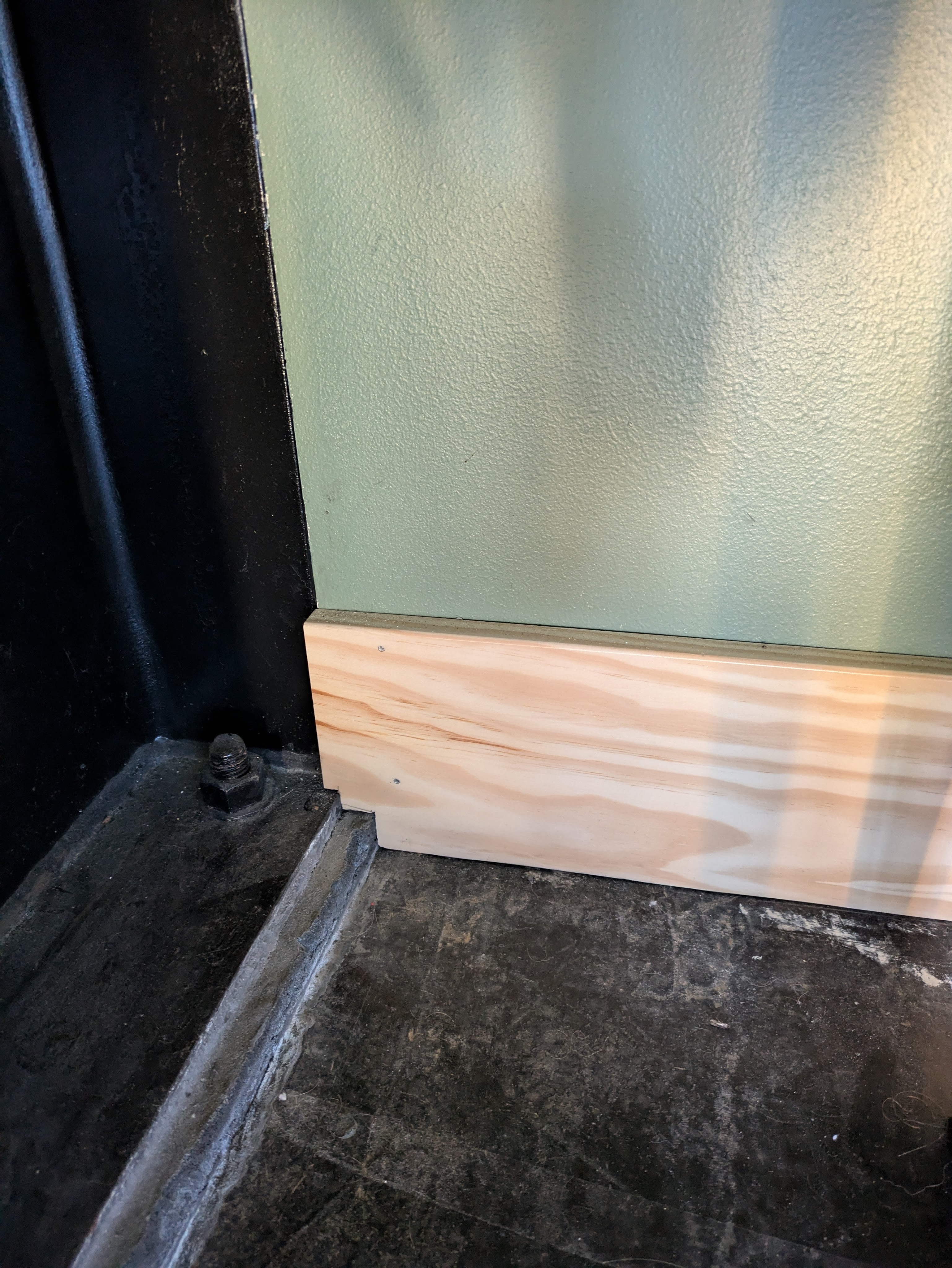 The shop bathroom got black baseboards to match the door.