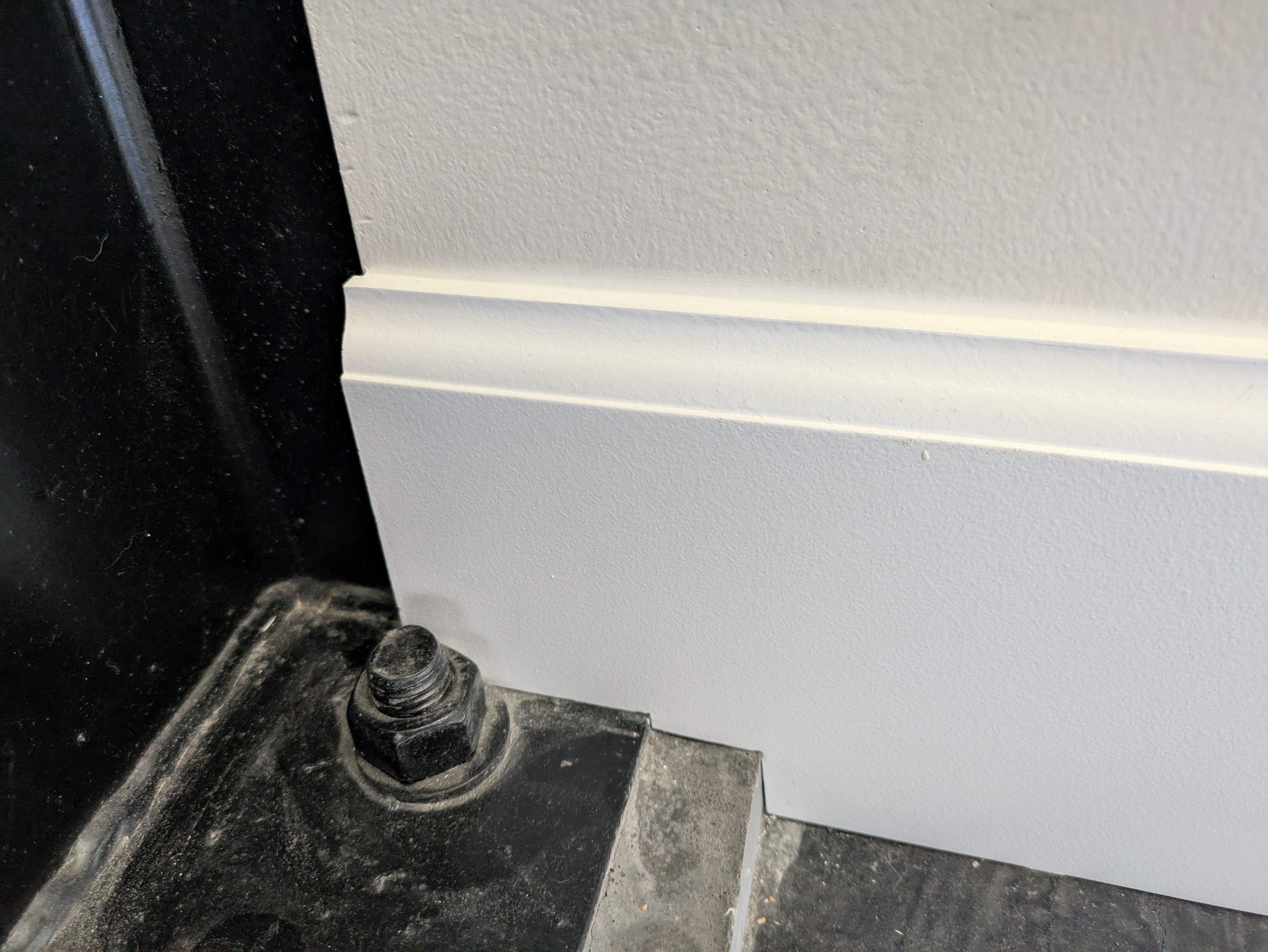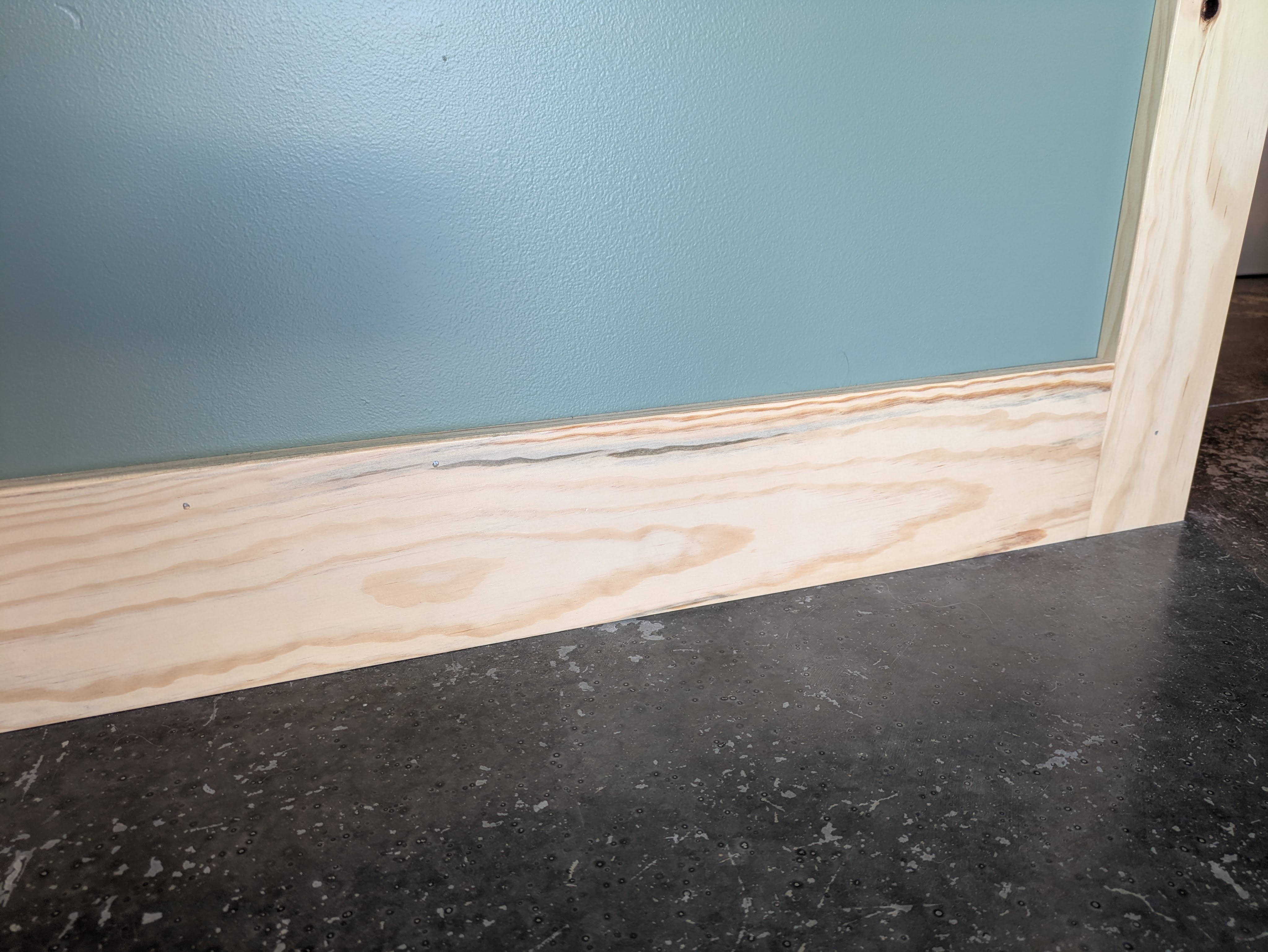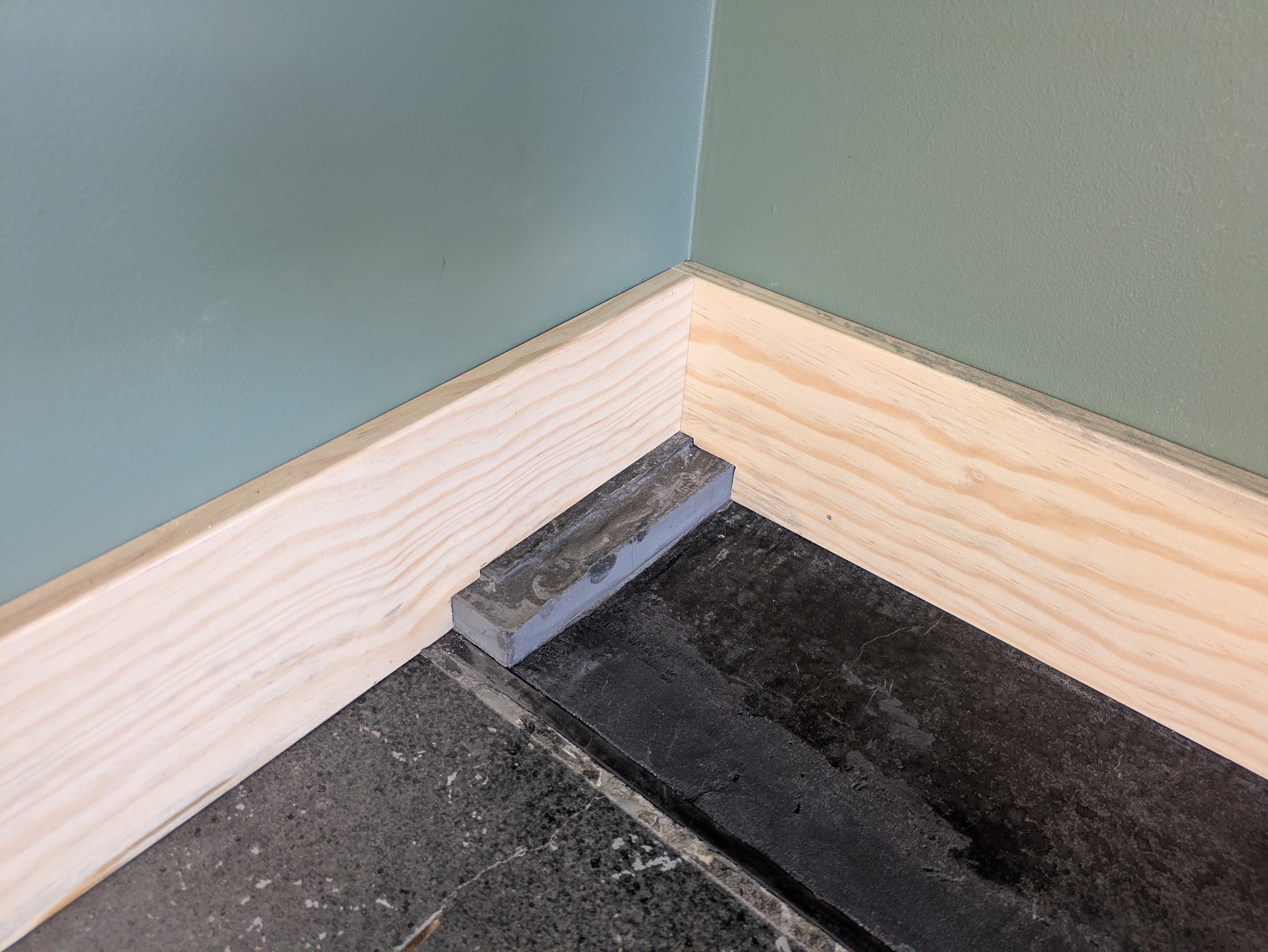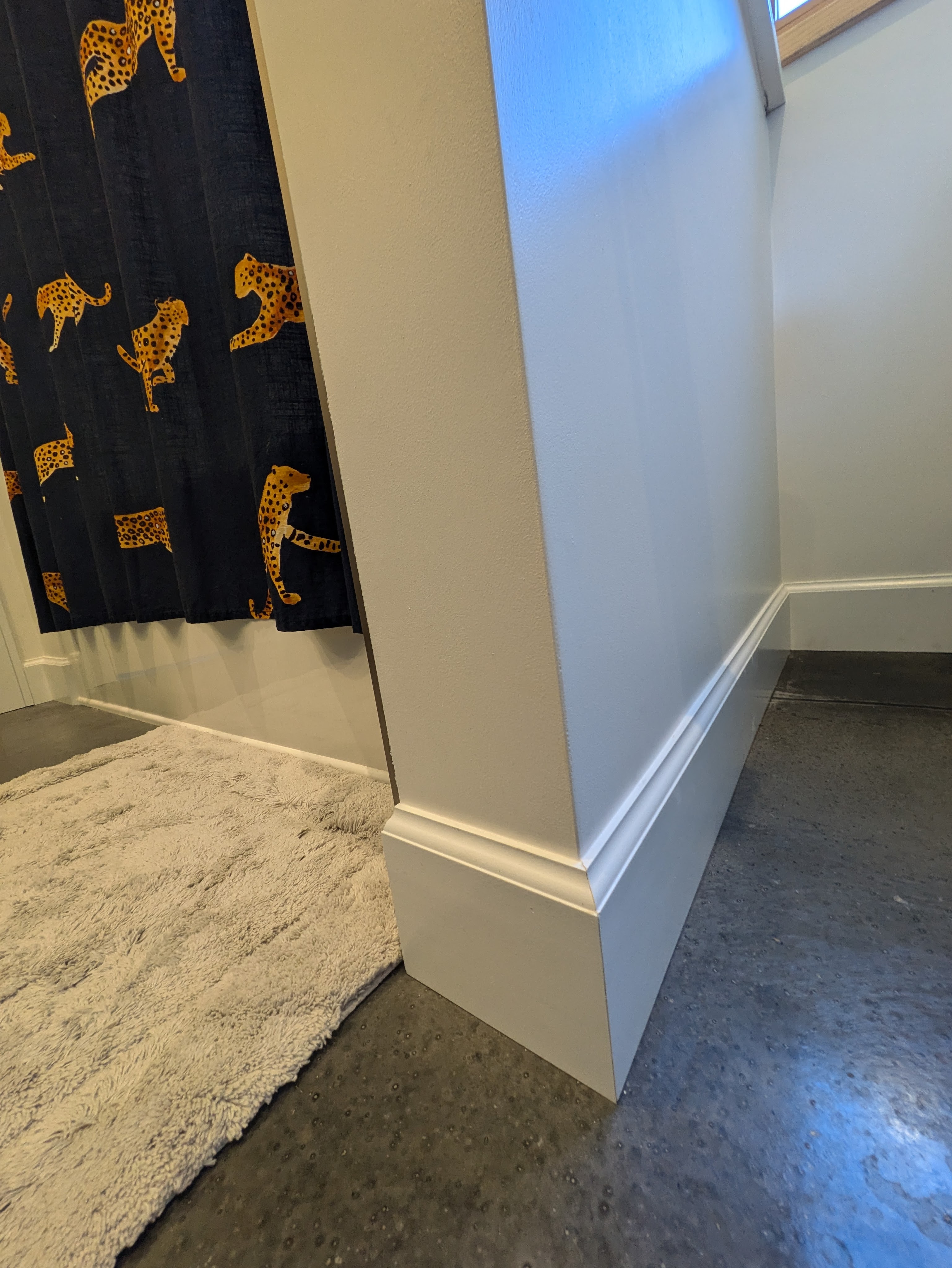 The shop bathroom got black baseboards to match the door.