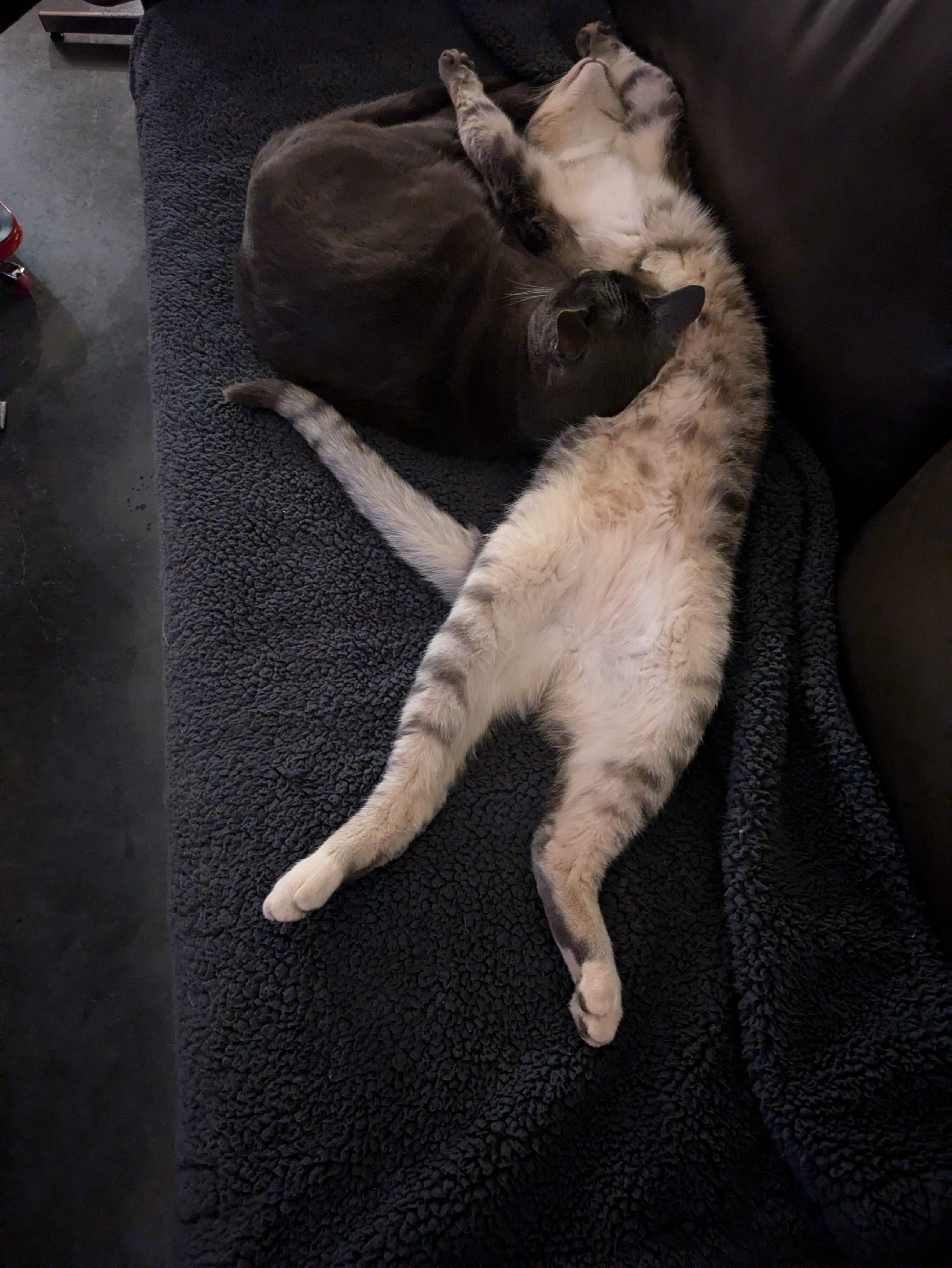 Also, our cats don’t actually watch TV. They just sleep in funny positions while we watch TV.