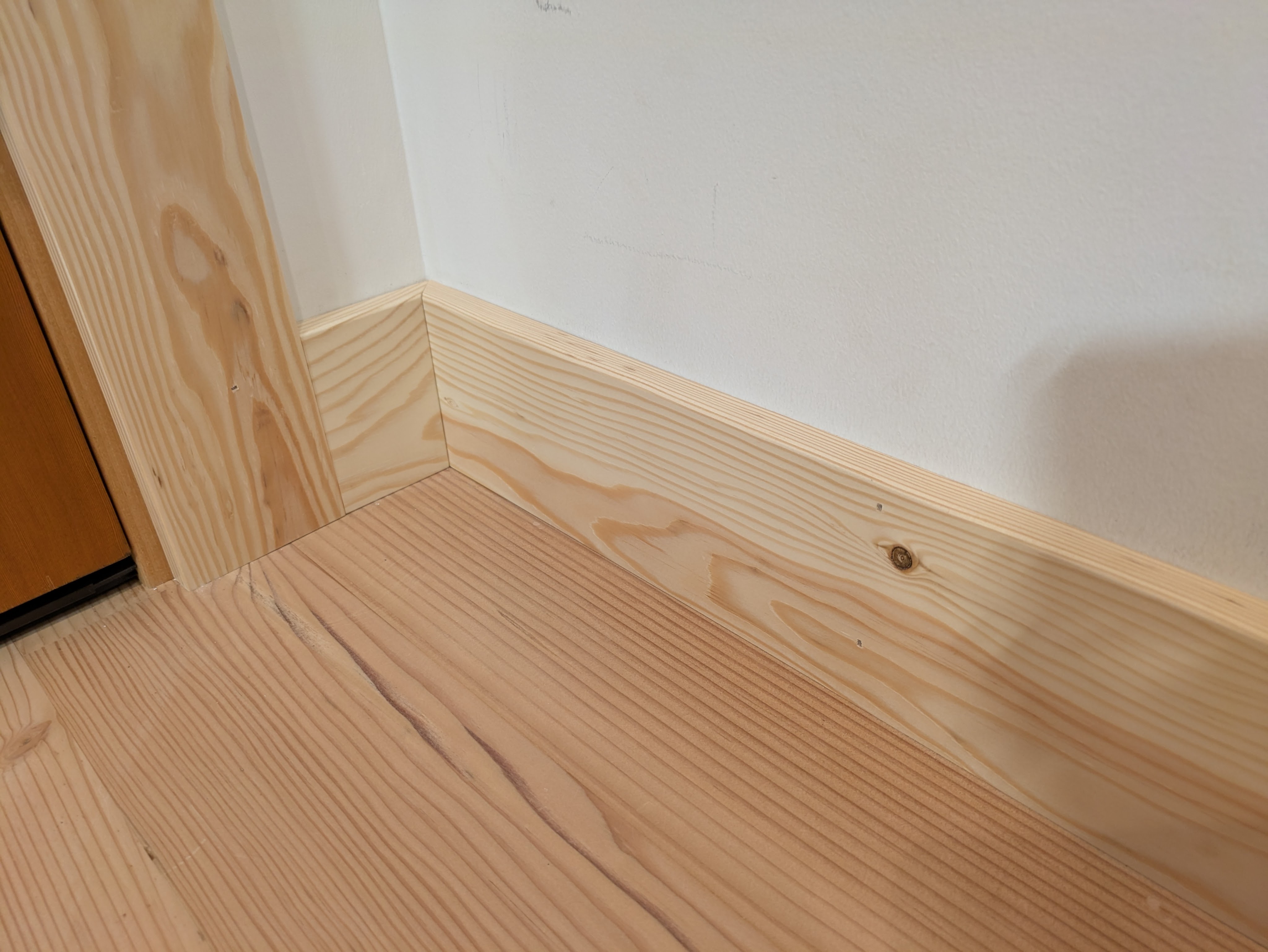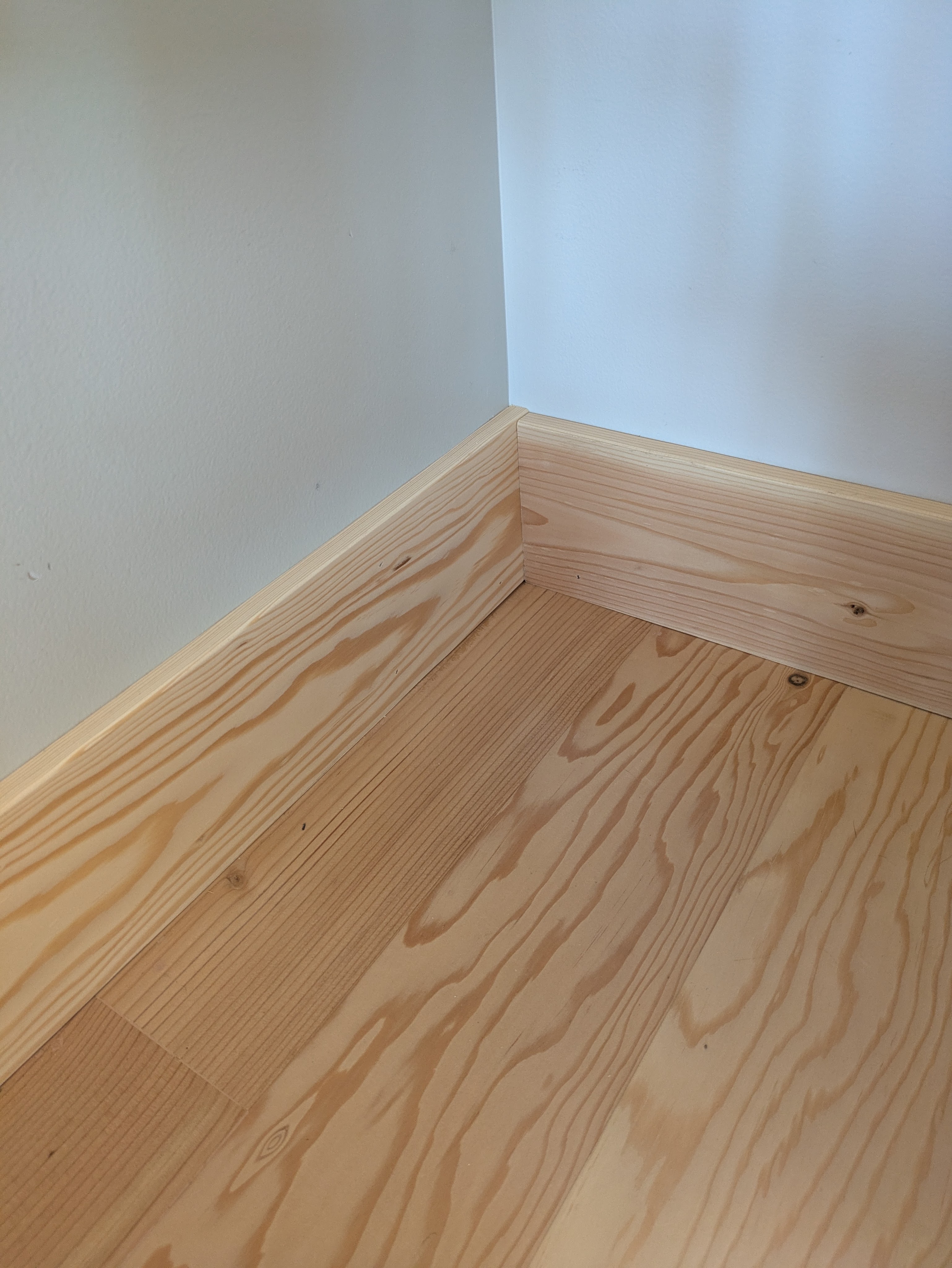The pine and fir boards we made have zero flexibility. Imagine fitting a 2×6 against a wall. There are some gaps I need to fill in the office.