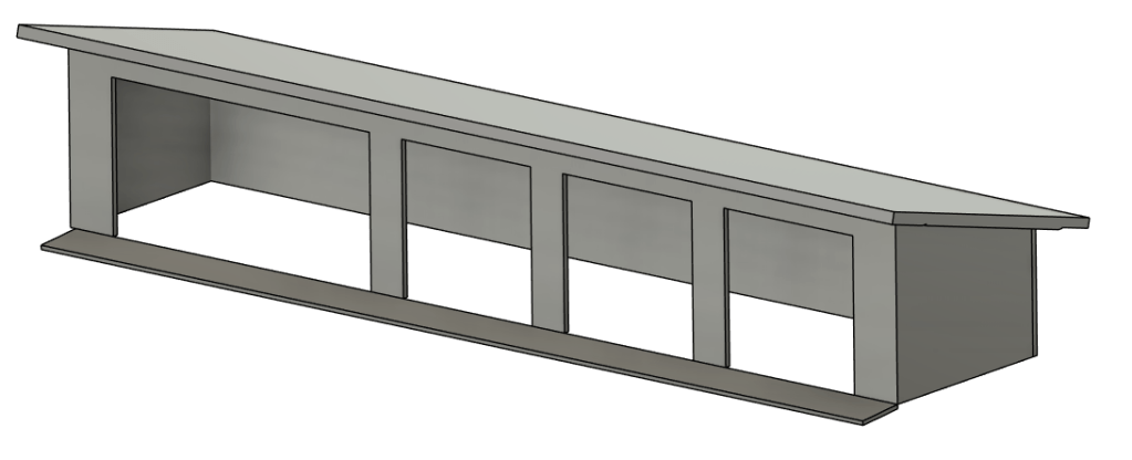 The “shed” (more like an open air palace), is 16′ x 77′. It has a roof and siding but no doors. We can keep all the dirty equipment in it, like excavator buckets, fire tools, water pumps, fuel tanks, etc. It will also have 20 ft wide storage racks for metal and such that can be accessed with the fork lift.