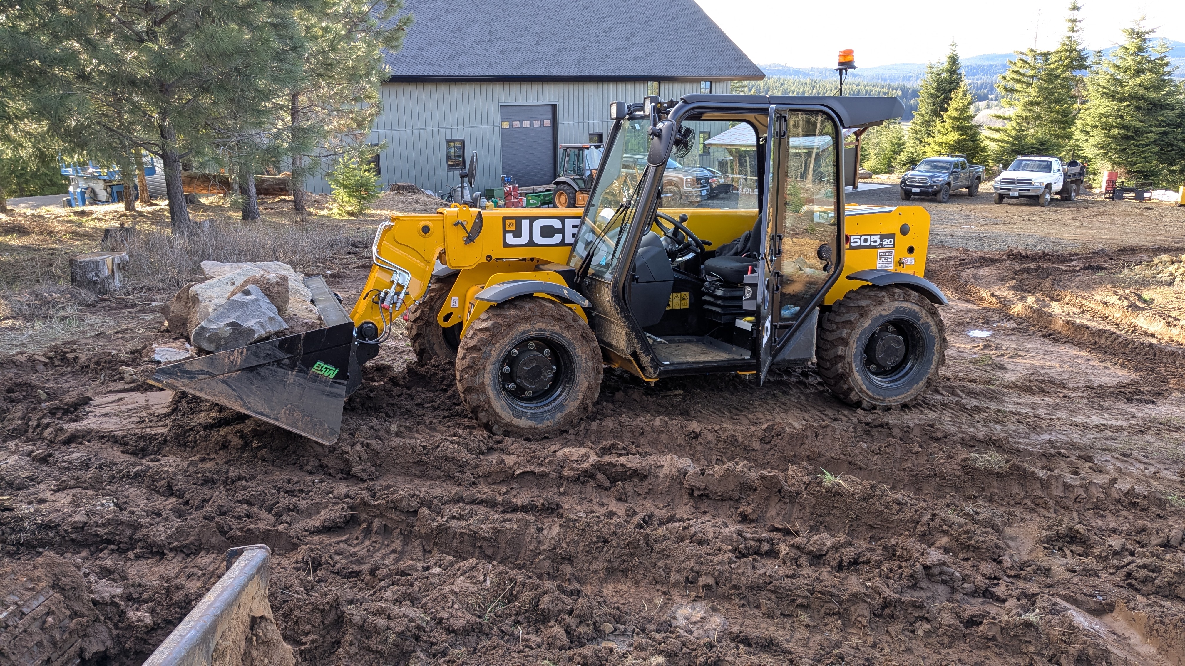 Oh yeah- Sam got a new toy. He’s leasing a telehandler which makes things like moving hundreds of rocks much easier. It’s also good for plowing snow.