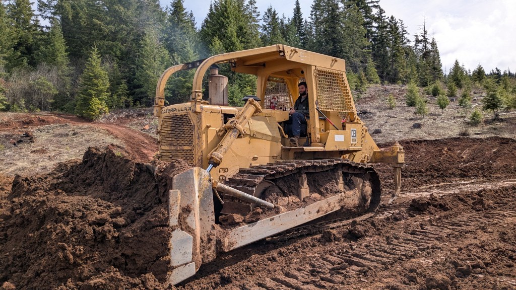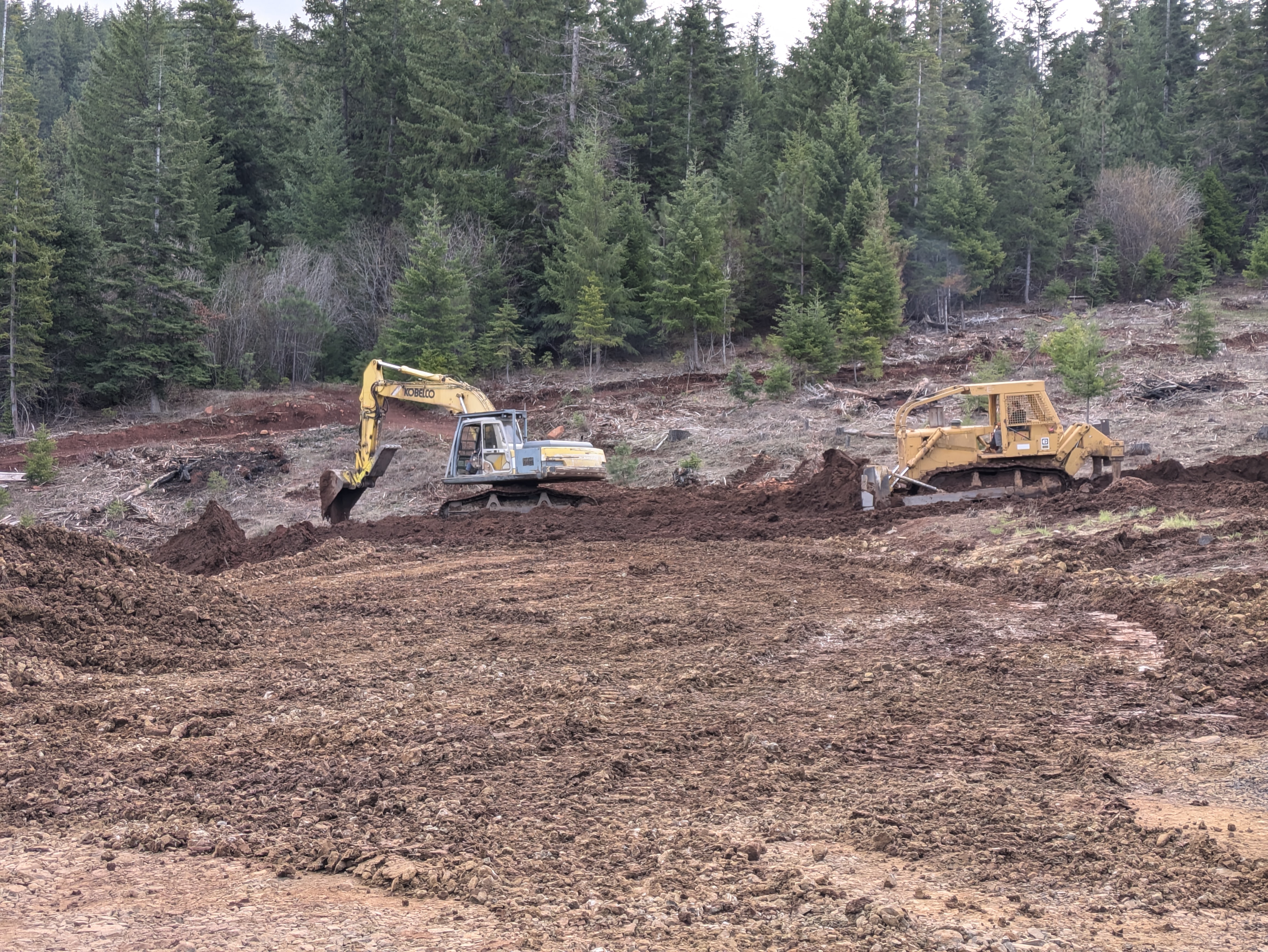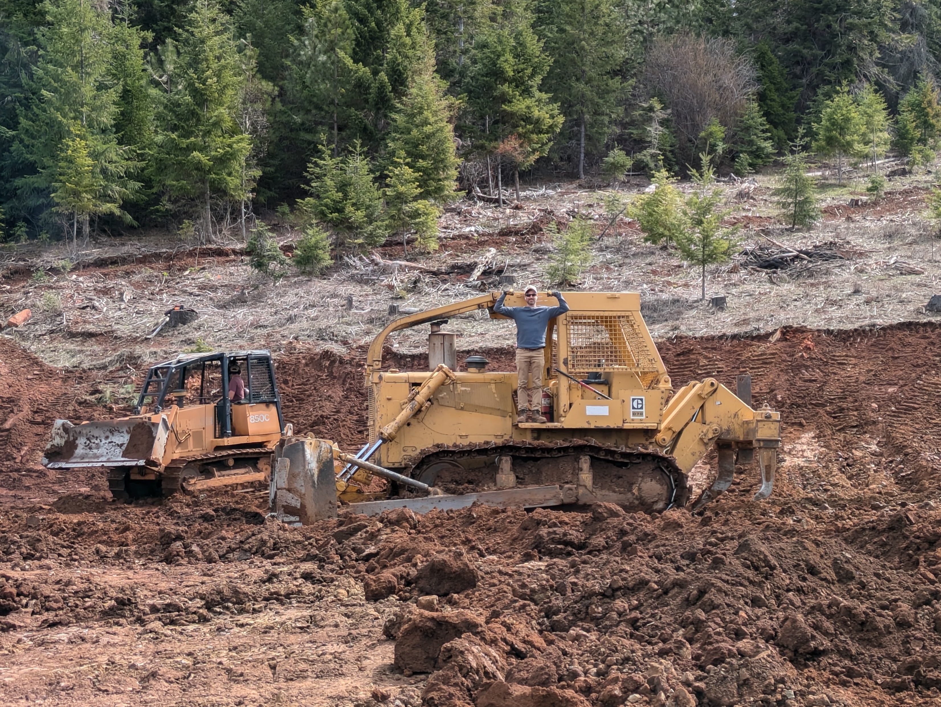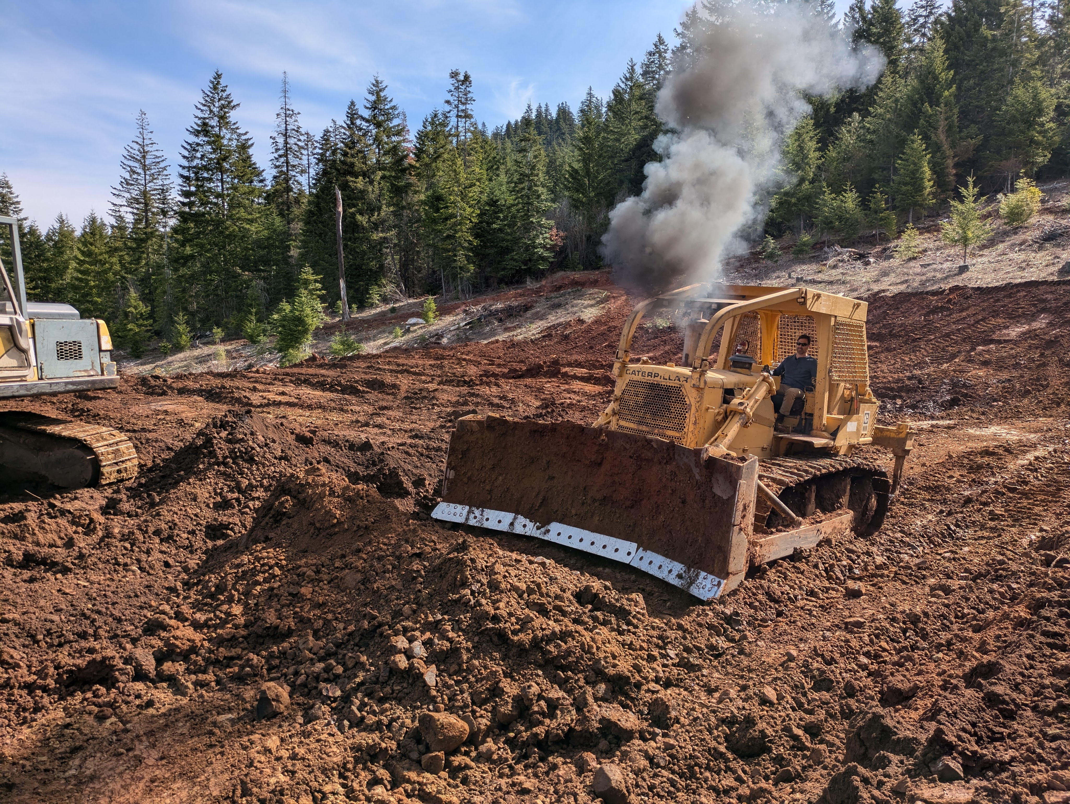 The valley couldn’t accommodate any more dirt (or we would start to bury trees). Plus, our smaller dozer was struggling to make it back up the hill.