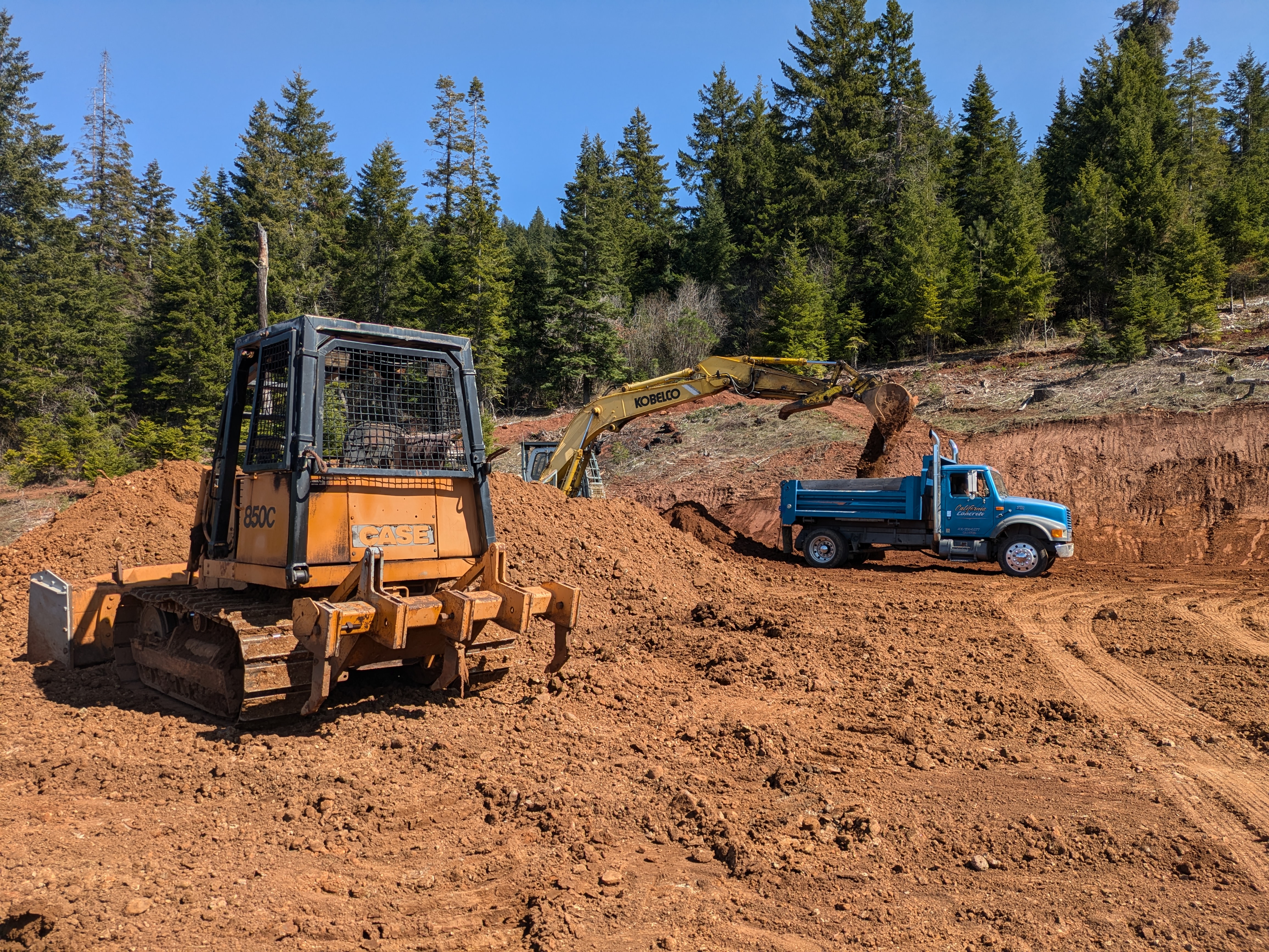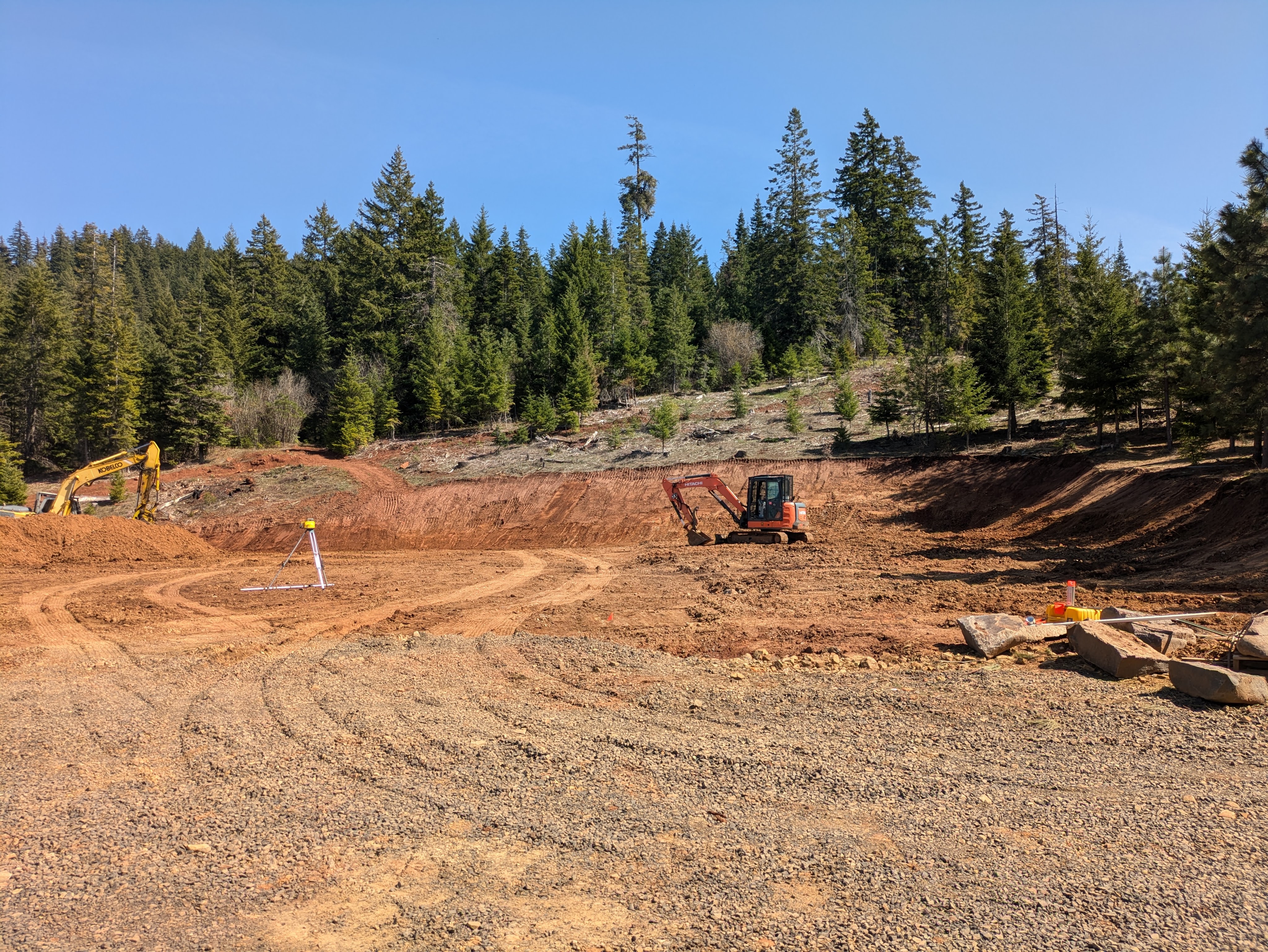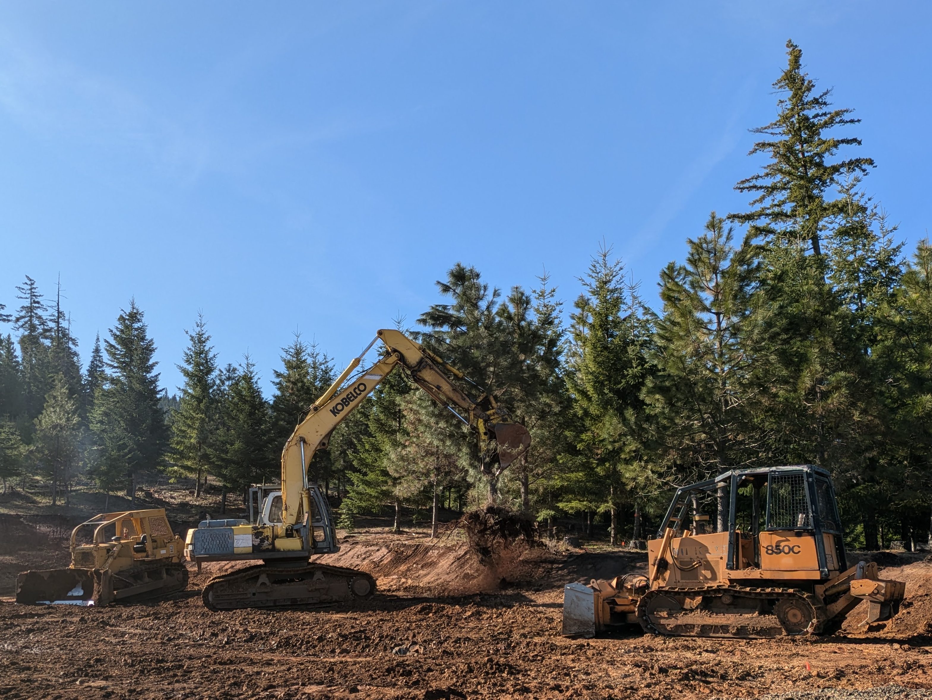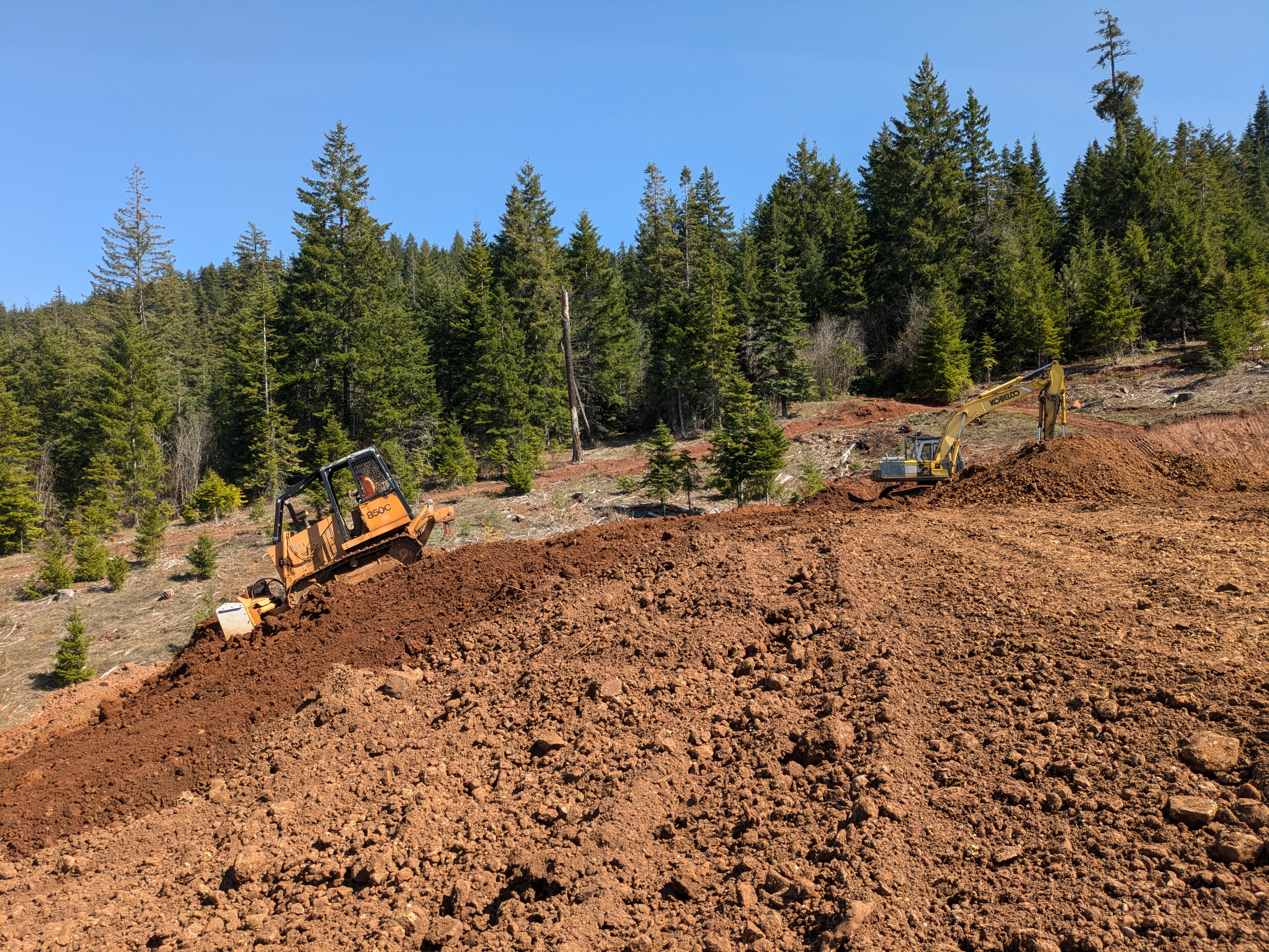 The valley couldn’t accommodate any more dirt (or we would start to bury trees). Plus, our smaller dozer was struggling to make it back up the hill.