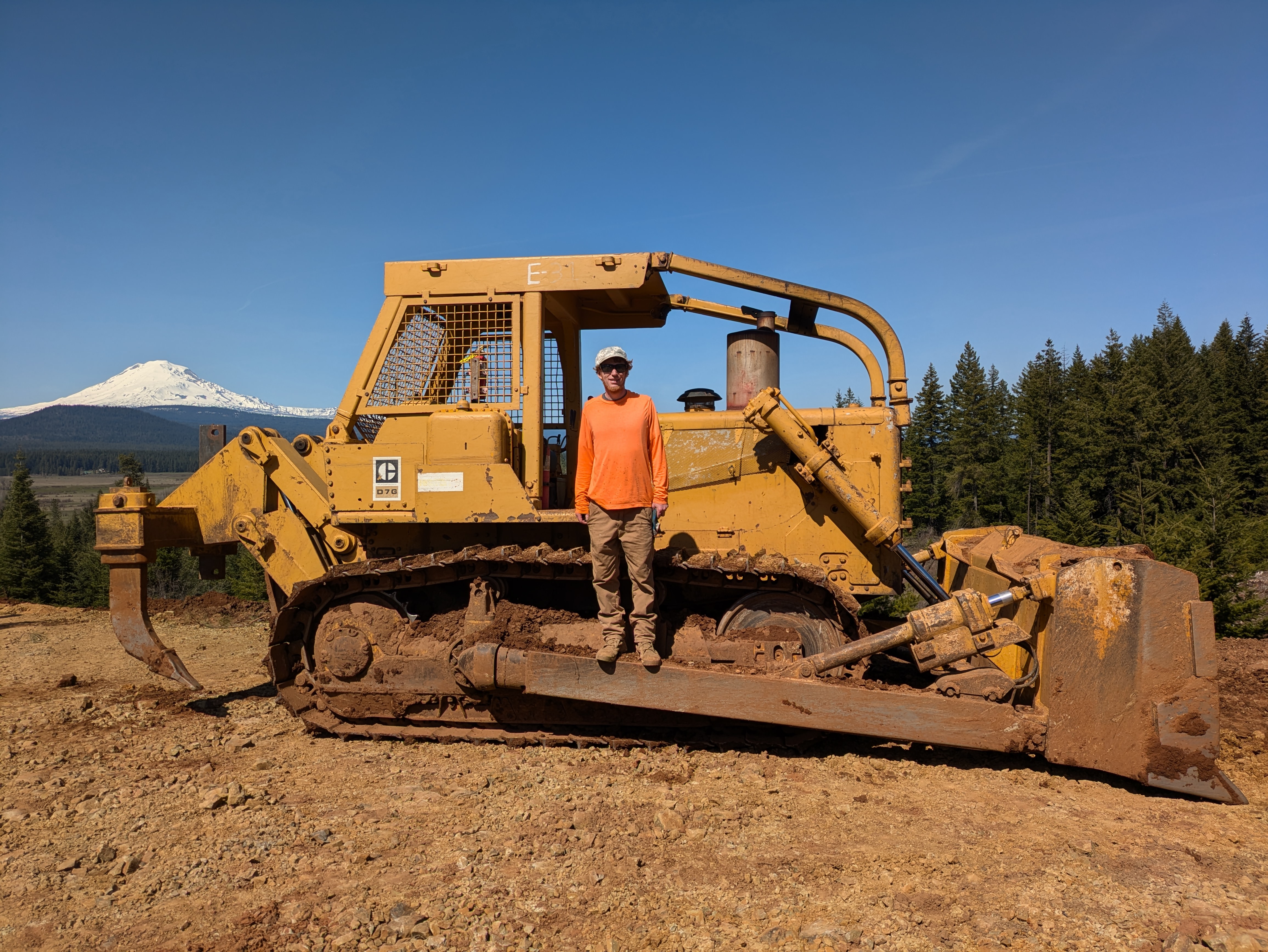 Although it was a pleasant 70 degrees most of the week, Ian felt like he was in Texas while operating the D7. It has a reversible fan that blows hot air forward in the summer and hot air on the operator in the winter. Winter mode also blows the debris out of the radiator, keeping it nice and clean. This sounds like a great feature, but apparently it feels like “getting sandblasted in the face”. So, on Ian’s last day, they reversed the fan. (I guess he didn’t complain enough the first few days.)