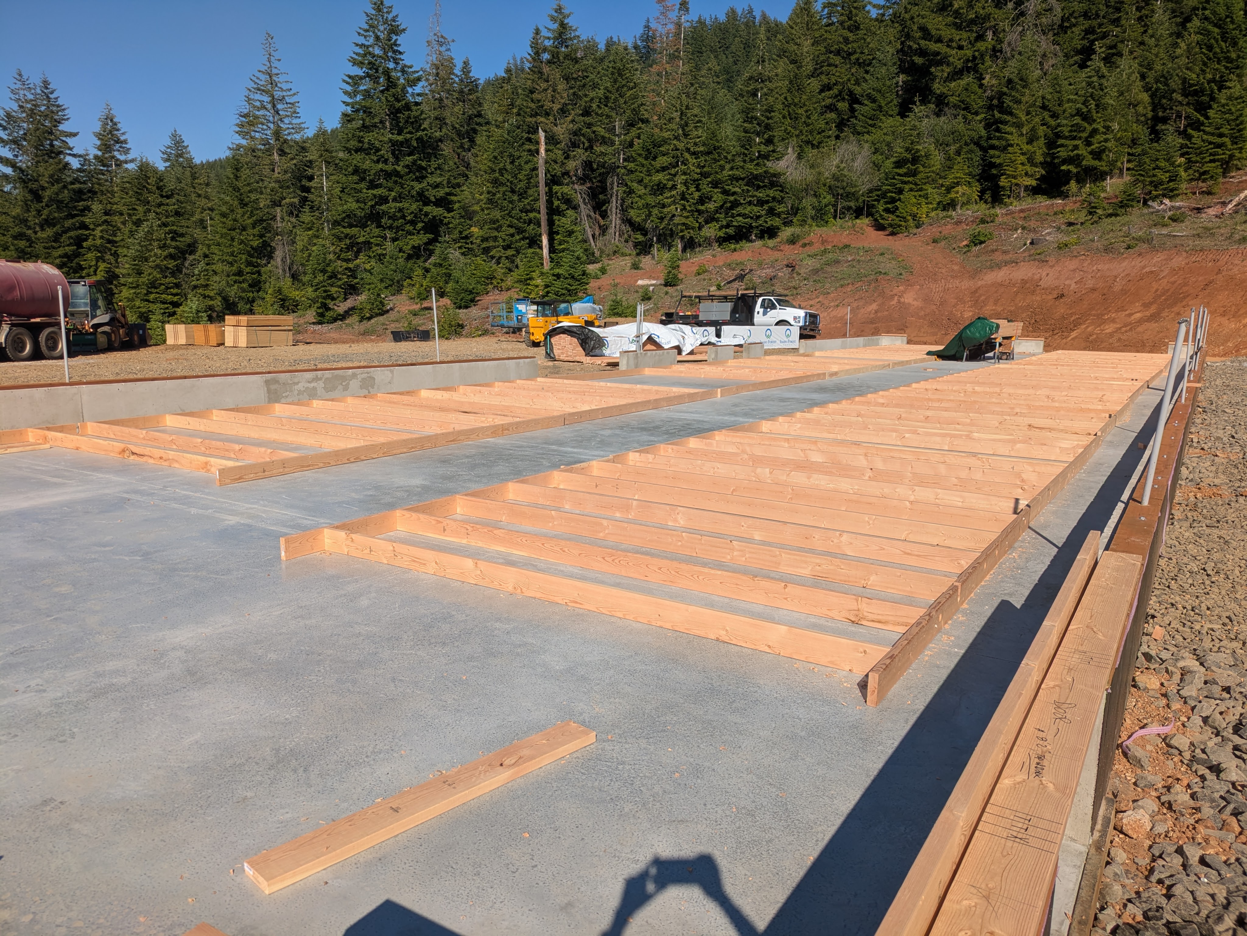 While the concrete was curing, Matt set up shop. A lot of wood was delivered.