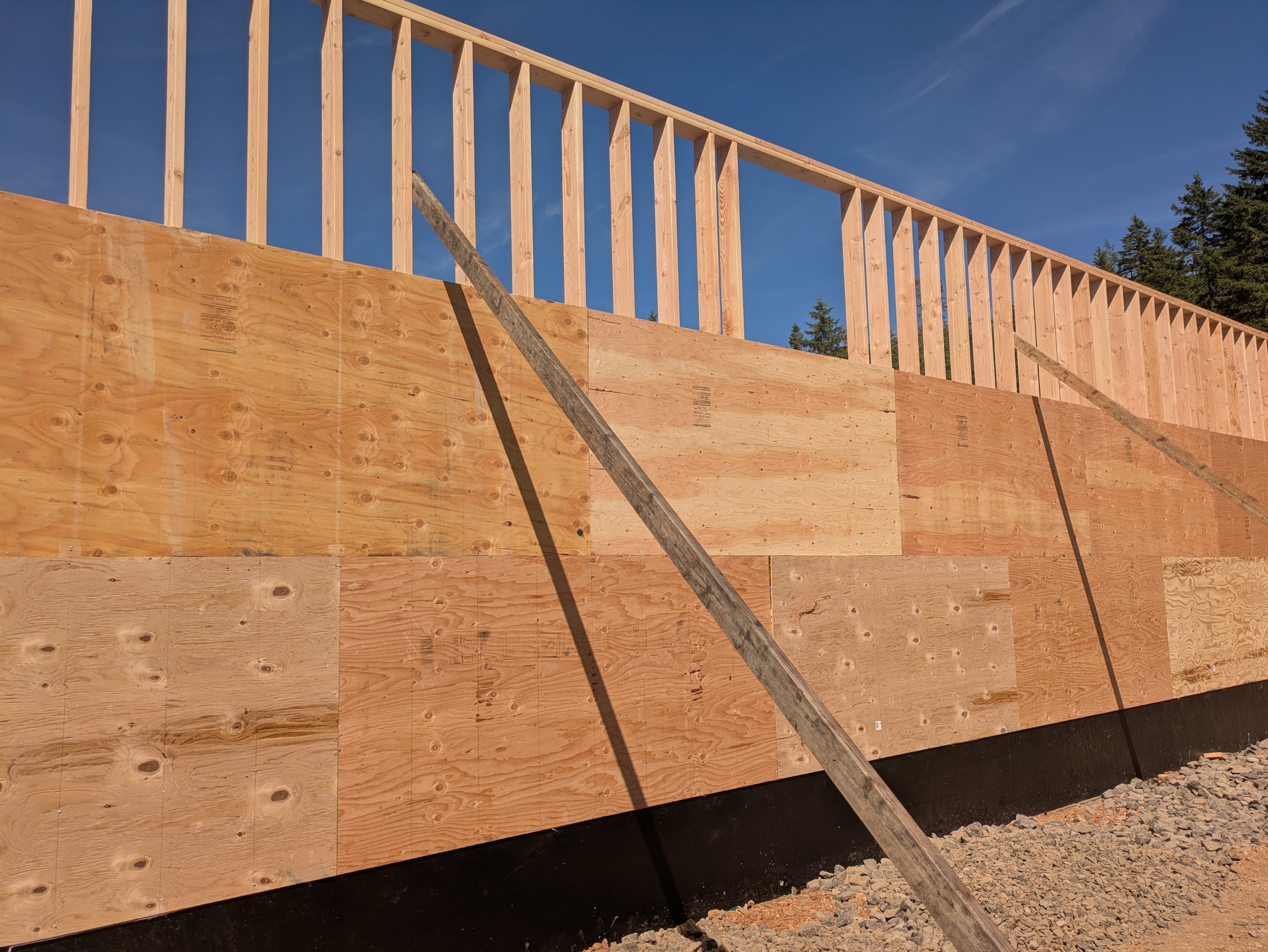 They put some of the plywood on and stabilized the walls with temporary bracing.