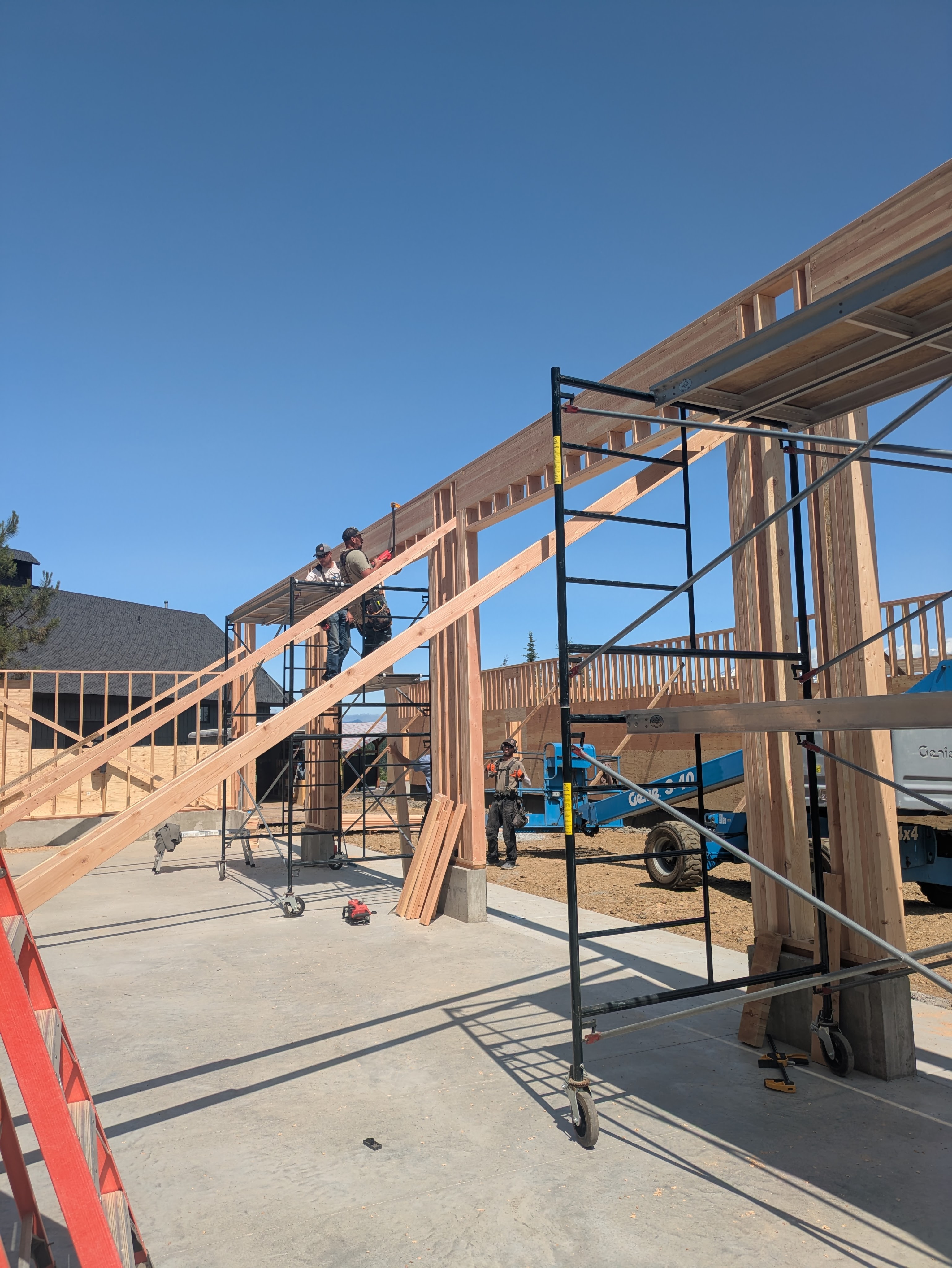 Chris, our trusted crane guy, arrived in the morning. The crew had already set about 10 trusses by the time I woke up.