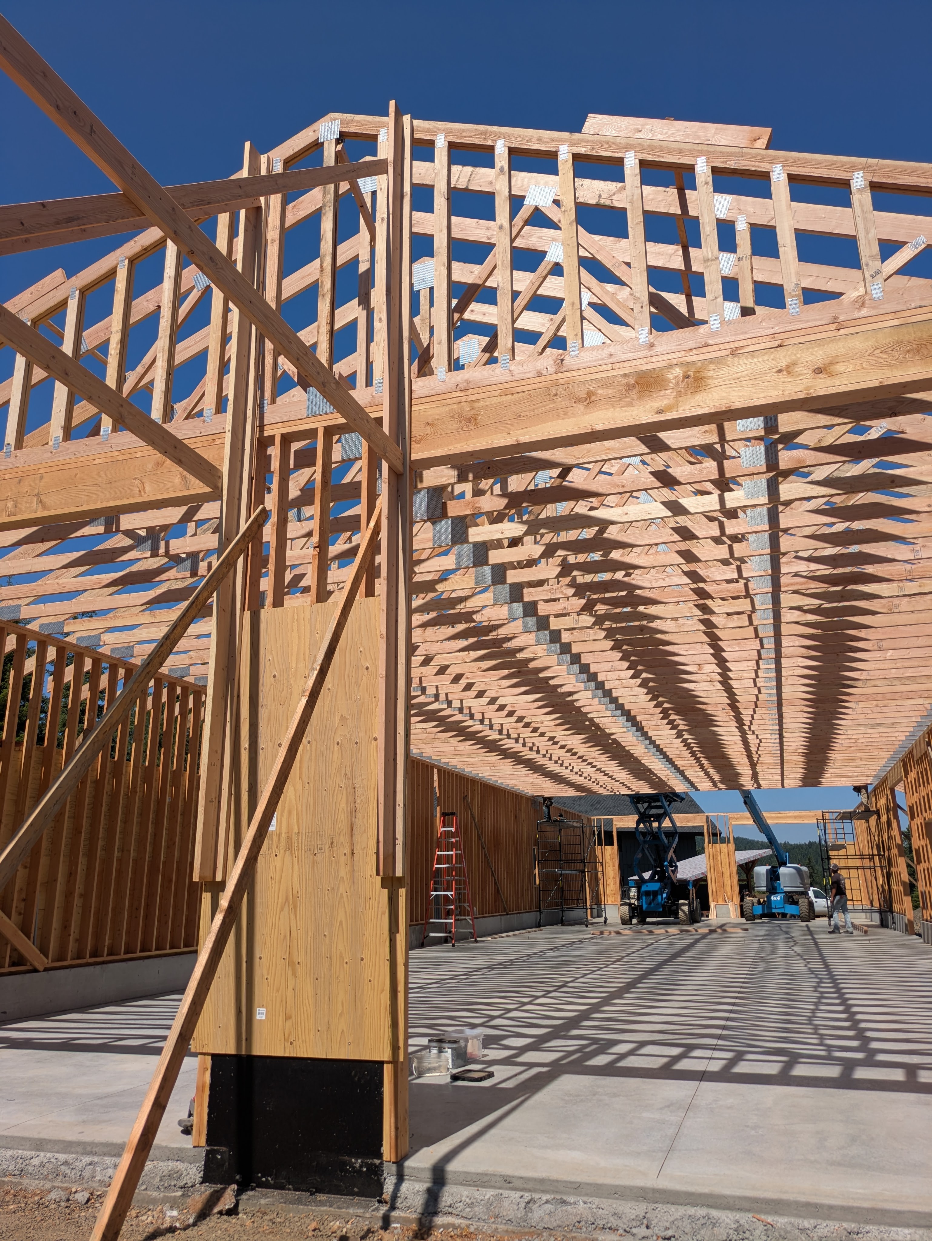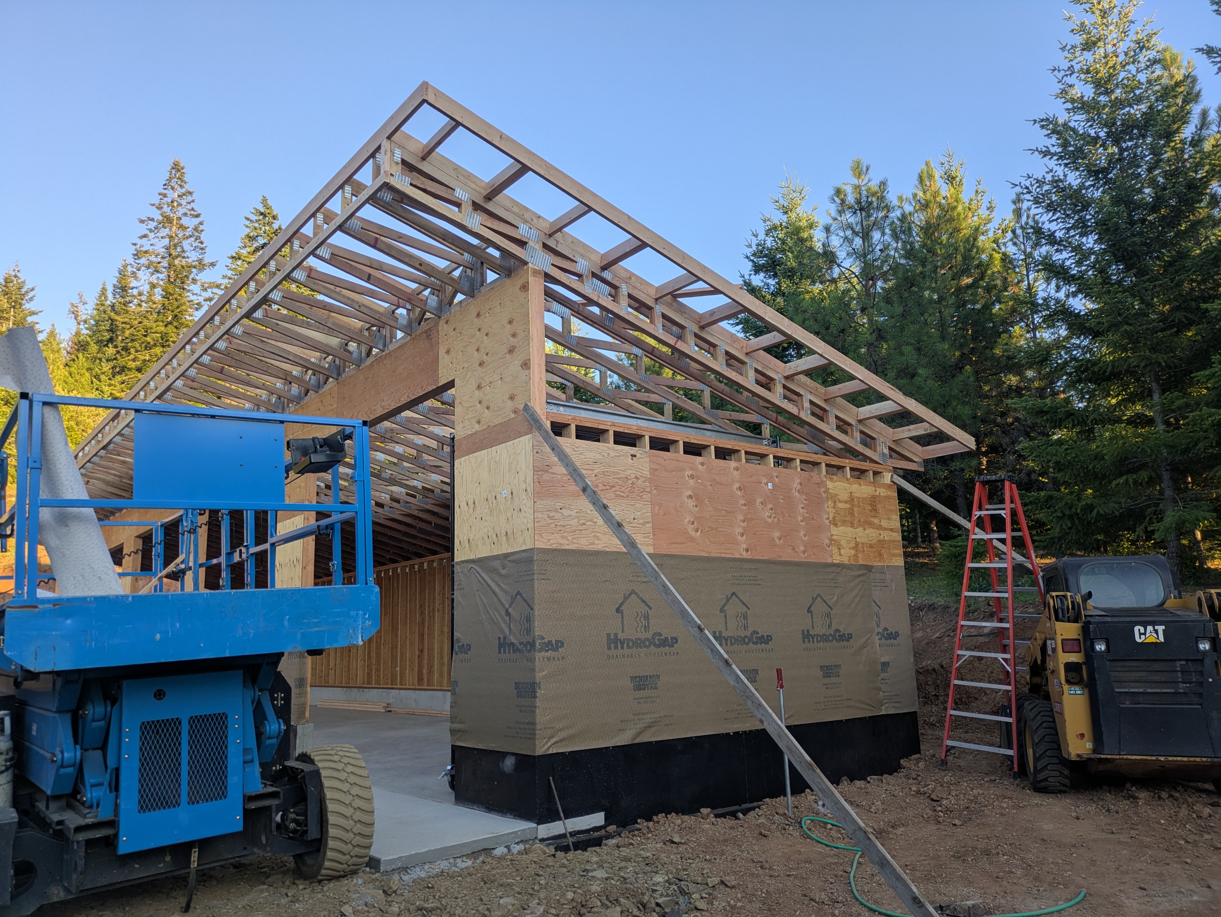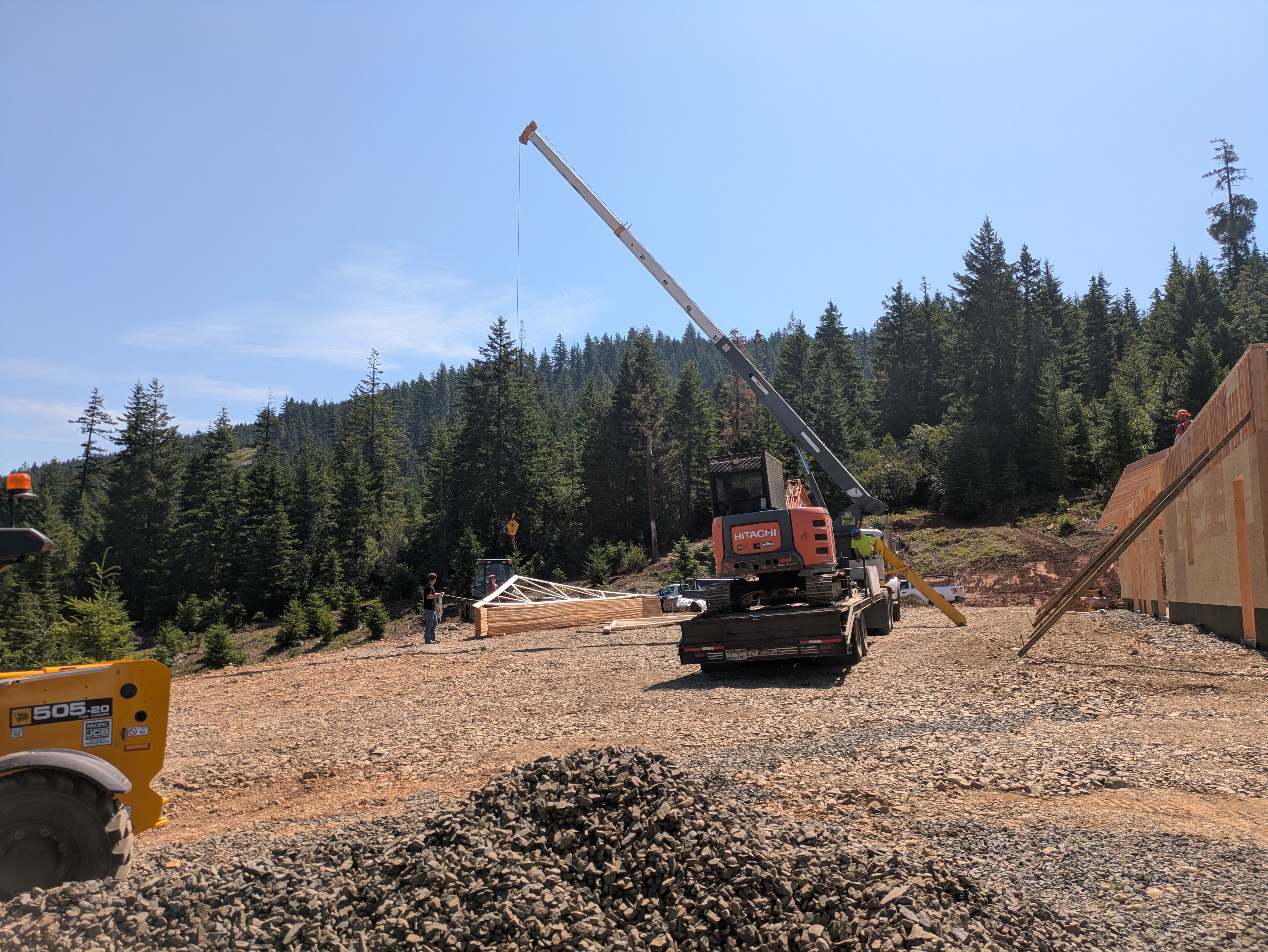We kicked off the next week with the truss delivery! The truck was carrying more wood than a extra large log truck. I’m still baffled as to how the truck got here from the Portland area. It would either have to cross a narrow bridge and/or go through some low clearance tunnels. Teleportation seems more plausible.