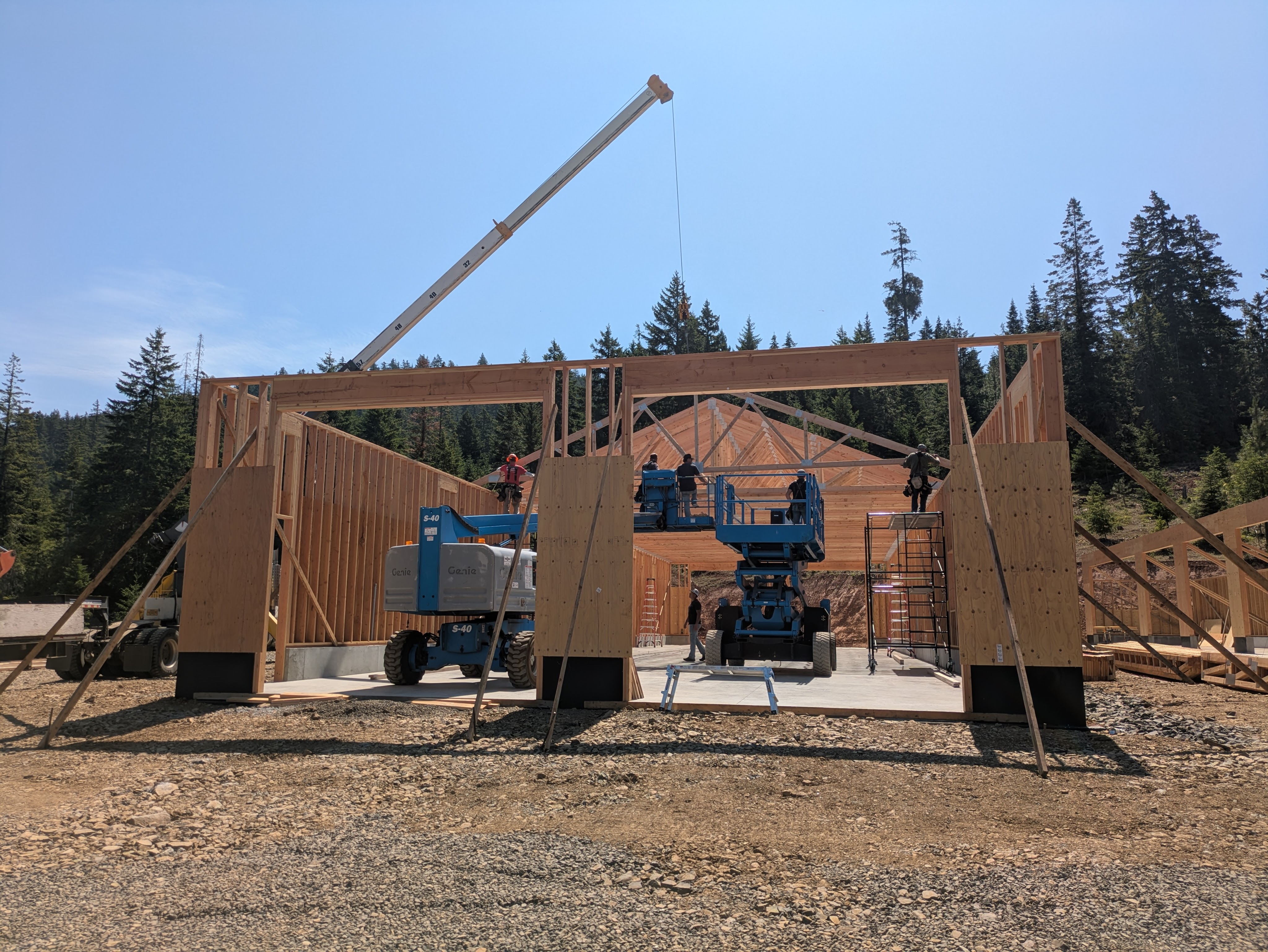 To add to the excitement, a second crane showed up to deliver the trusses for the shed.