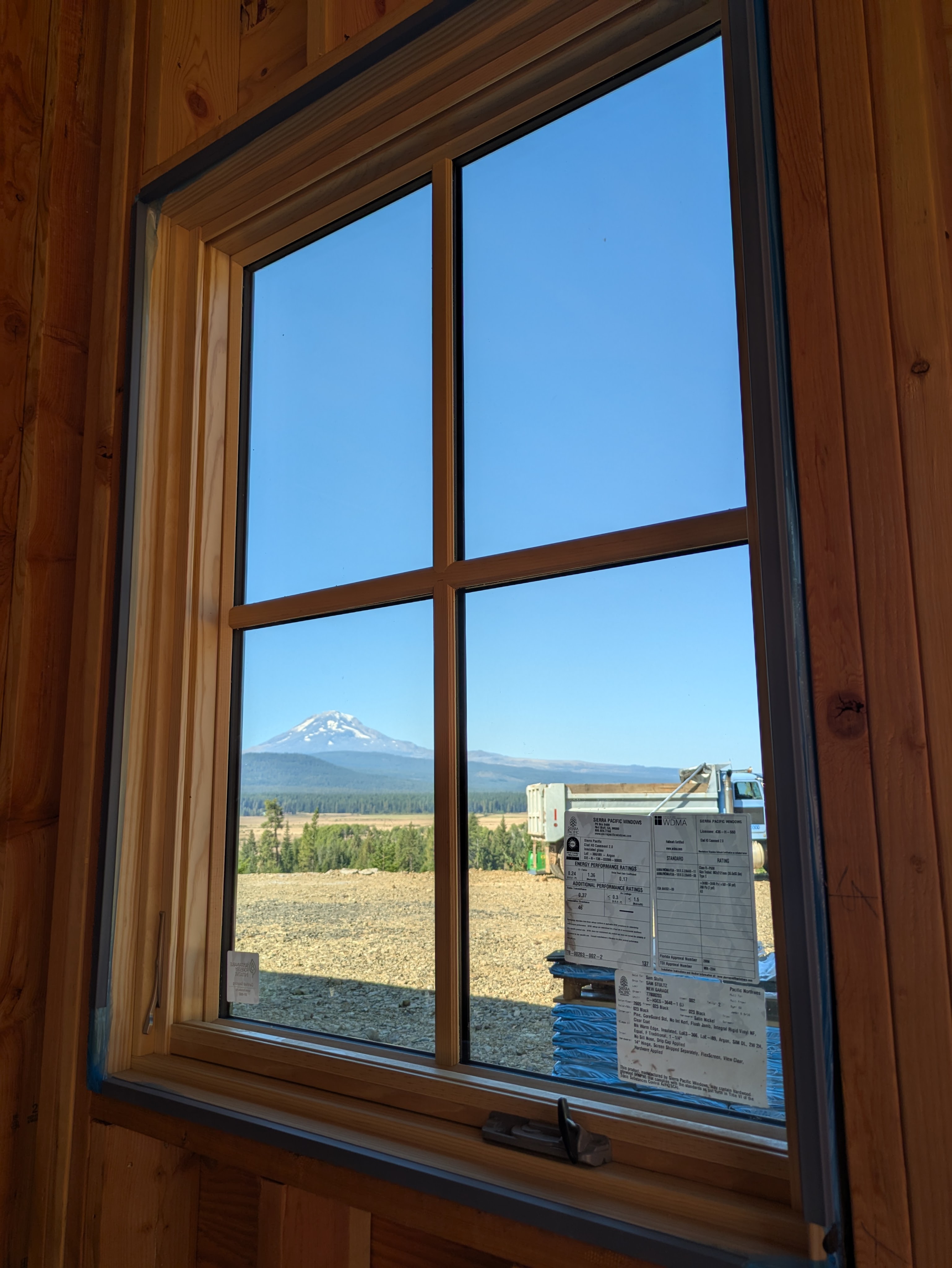 All four windows are in too. We got a slightly cheaper version of our shop windows. They probably look the same to the undiscerning eye. They are pine with black aluminum cladding on the exterior.