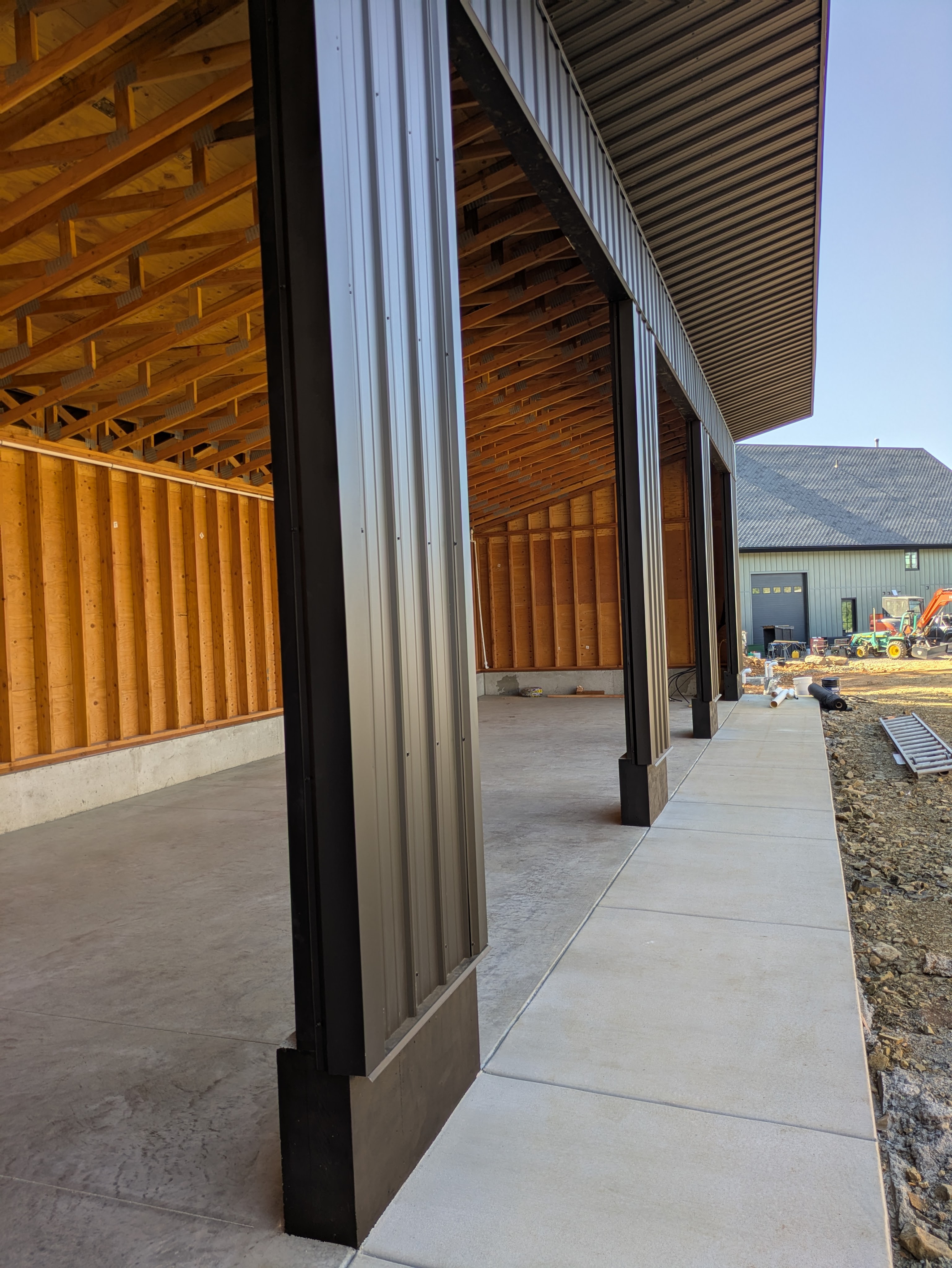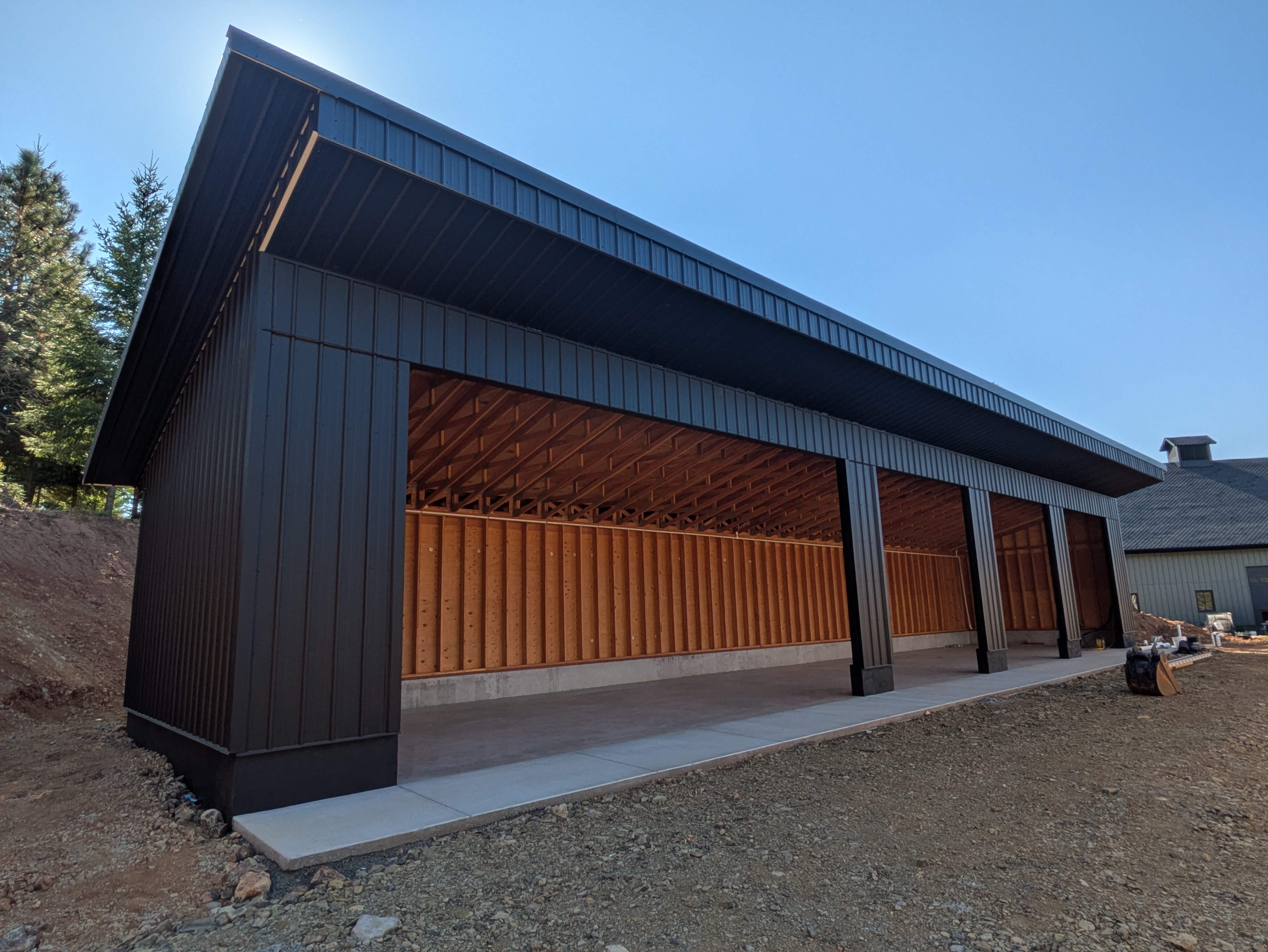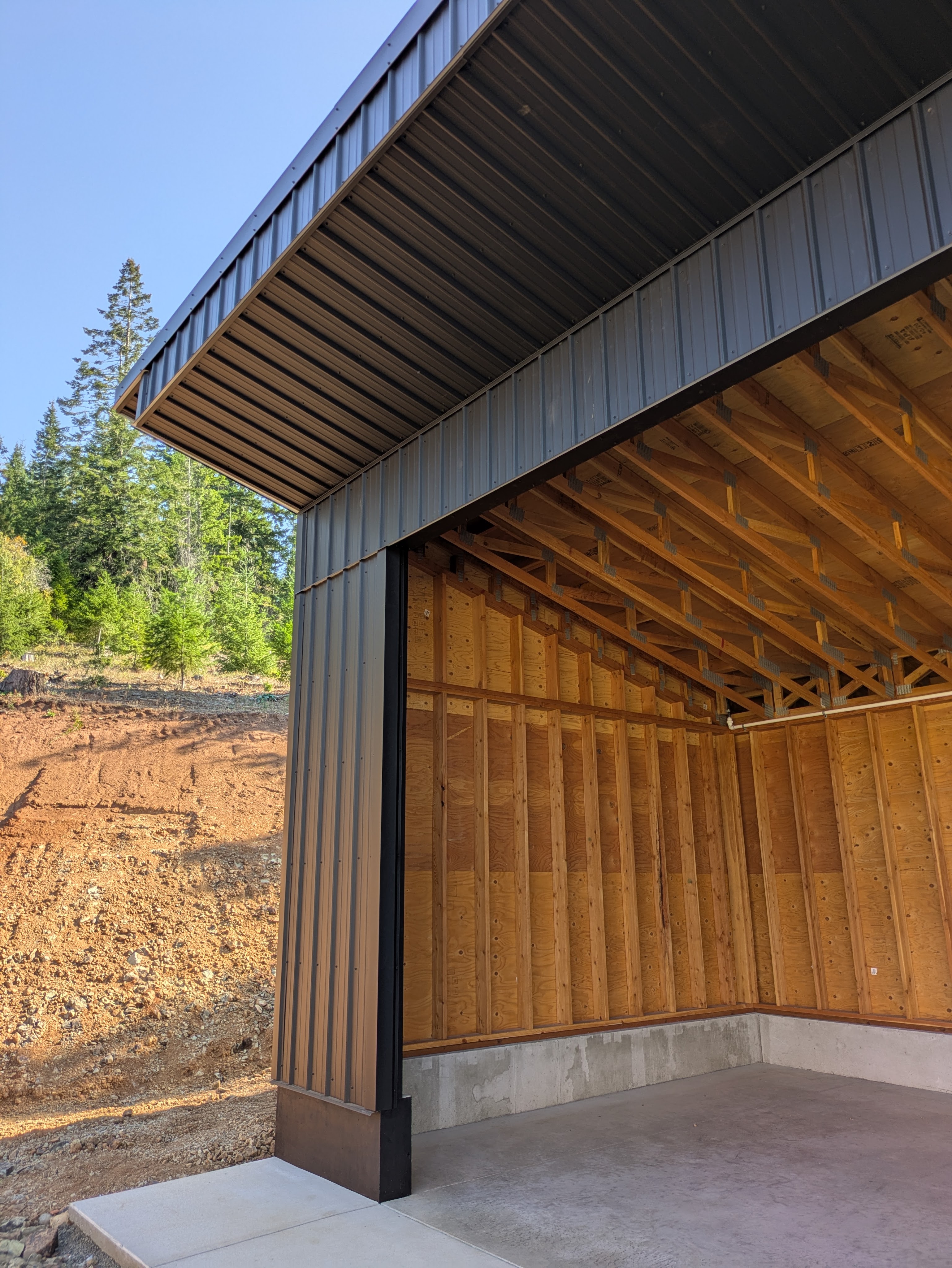 The siding on the shed is done! We used a standard PBR profile with exposed fasteners. It looks real sleek.
