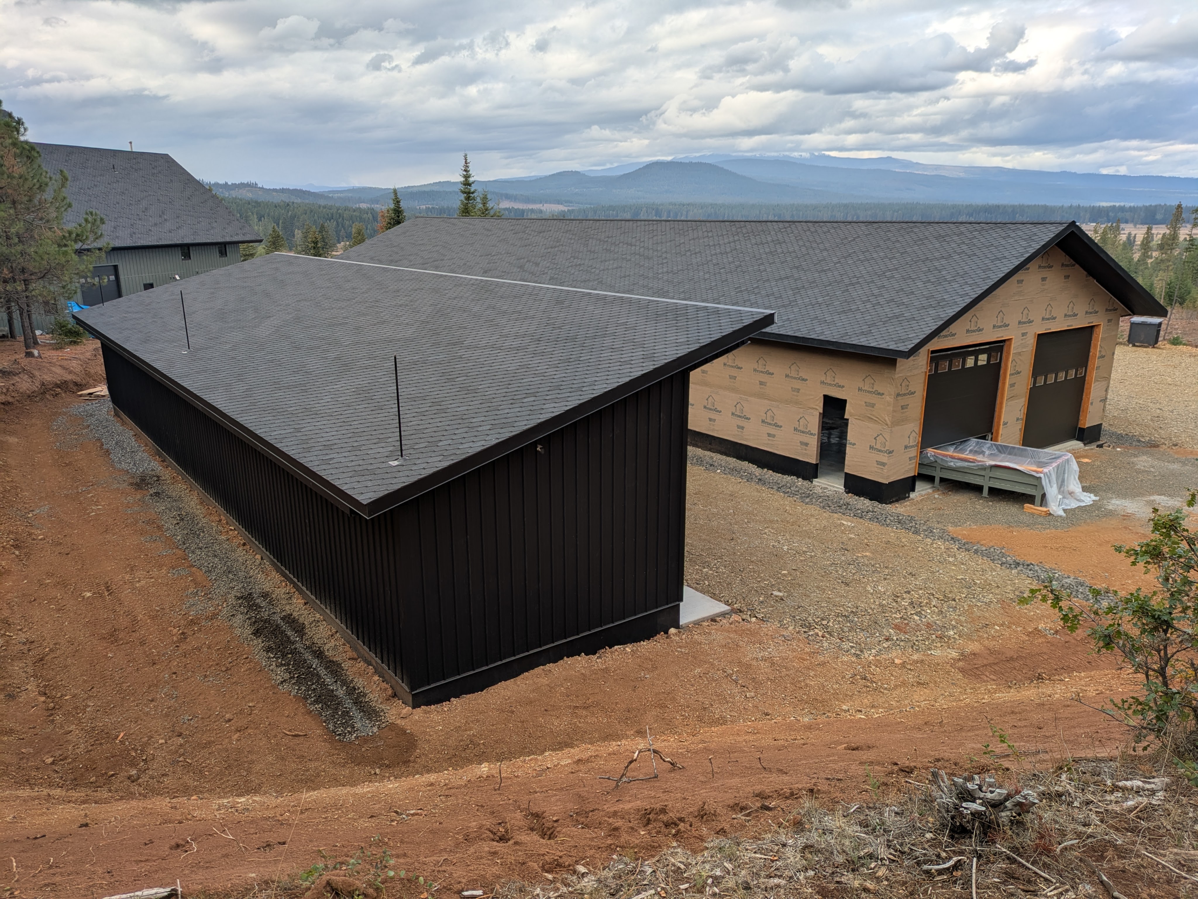 The roofs are complete! The new roofs have the same diamond shingles as our shop/house.
