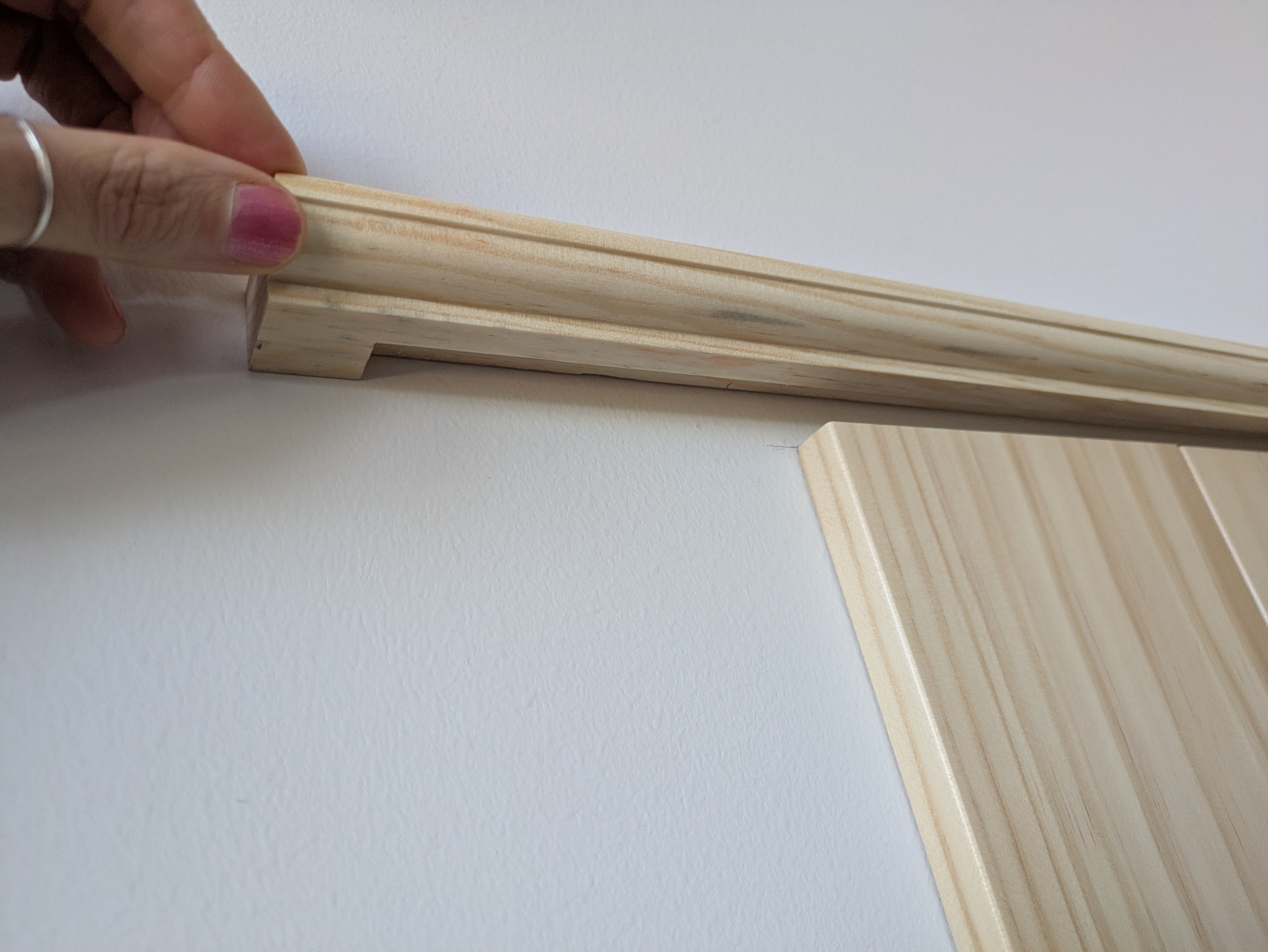 We also made a lower trim piece. The trim pieces also help hold the wainscotting panels in place.