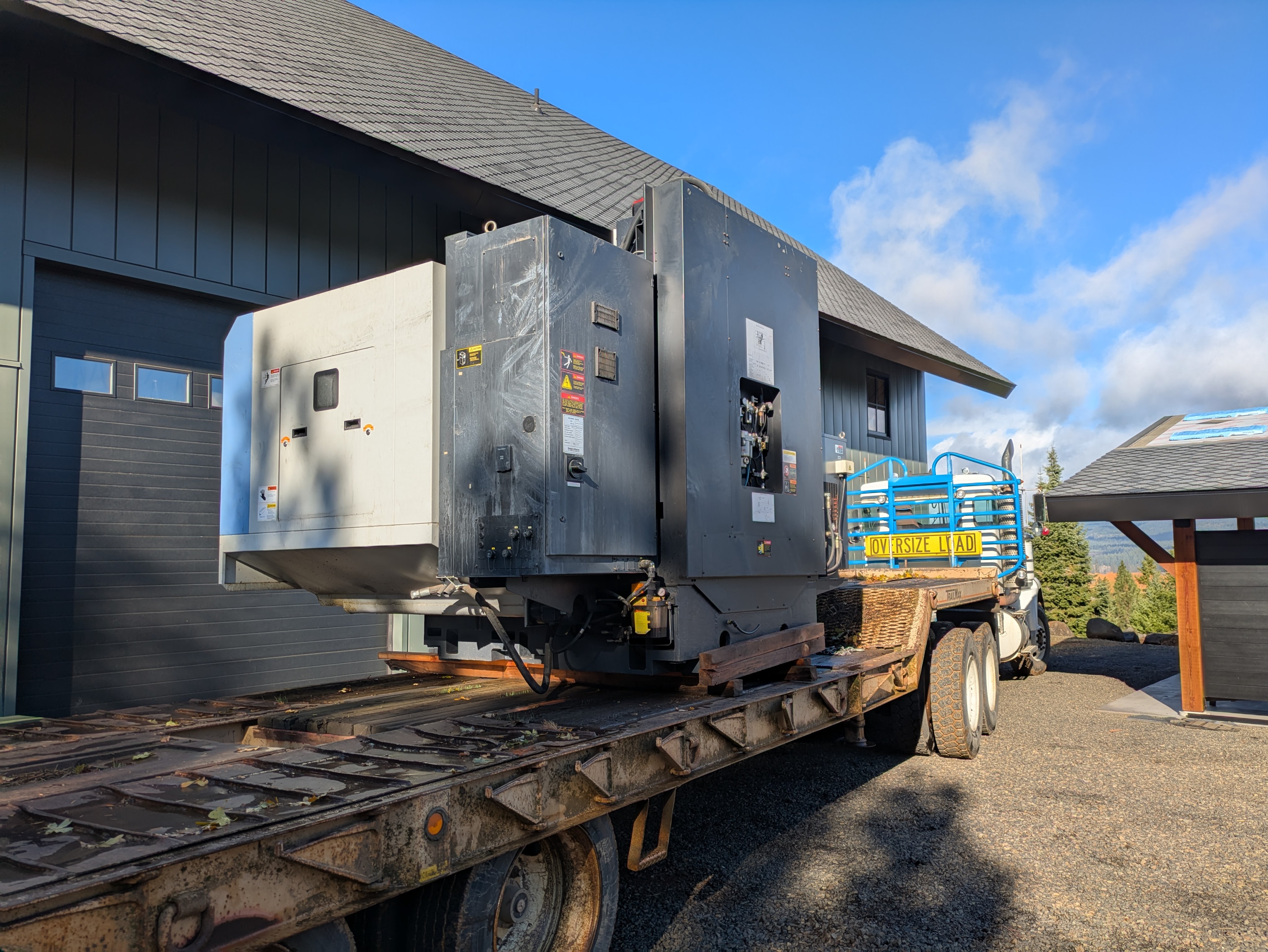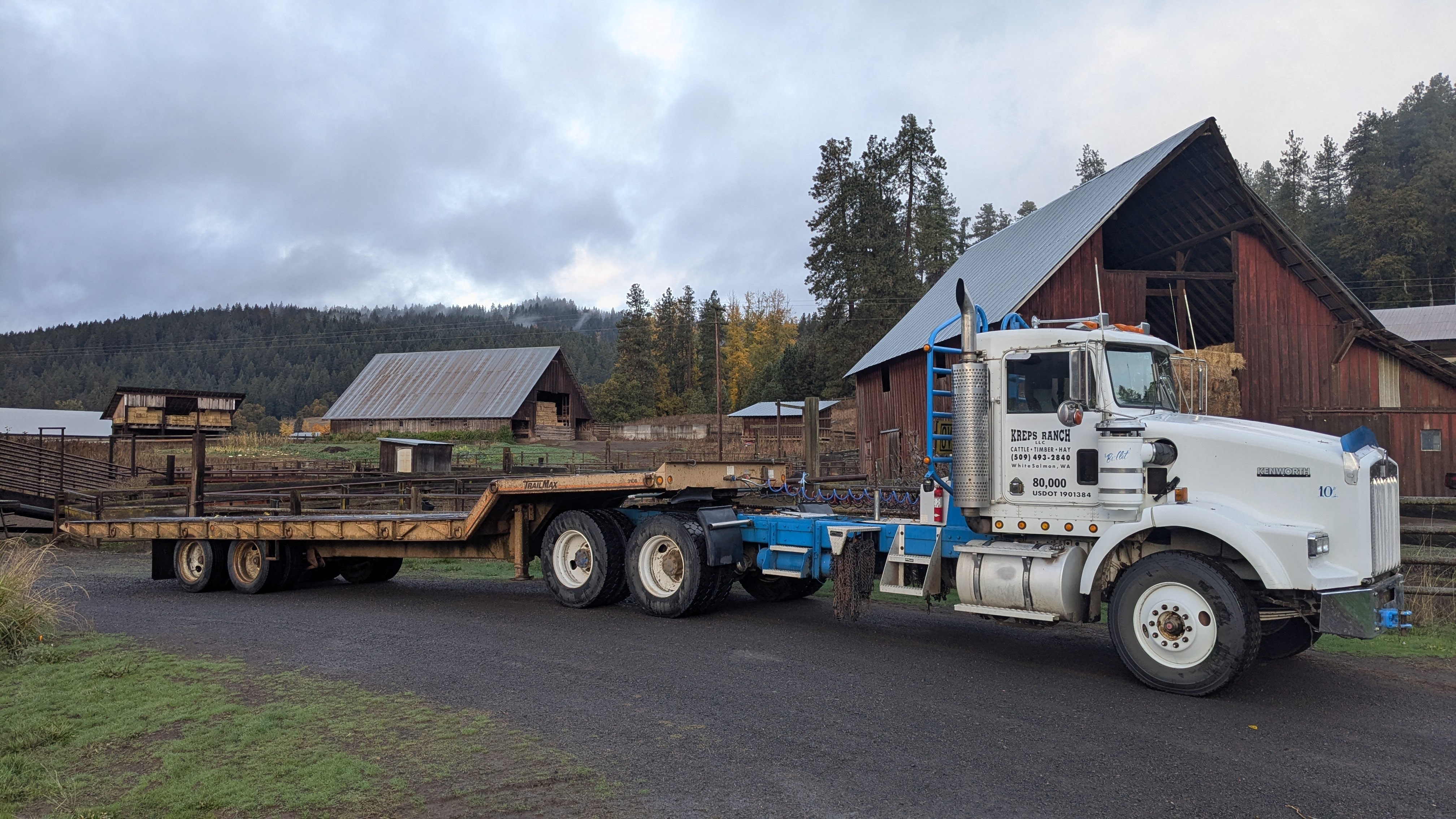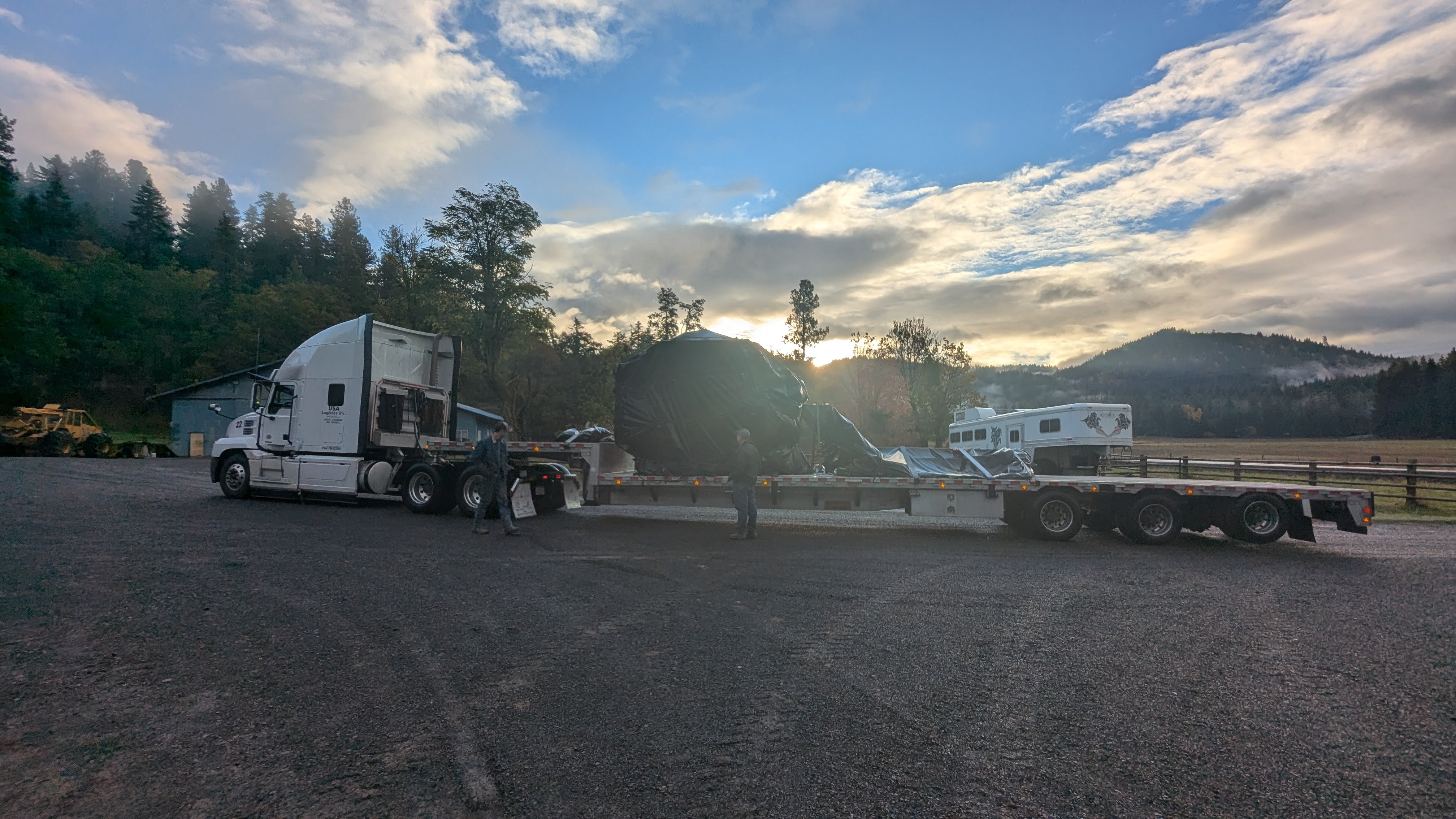 Sam had it trucked from Colorado. The mill weighs about 19,000 lbs, which is way too heavy for any of our machines to lift. Sam had to work out some logistics to get it into the shop. He had it delivered to our awesome neighbors at the ranch.