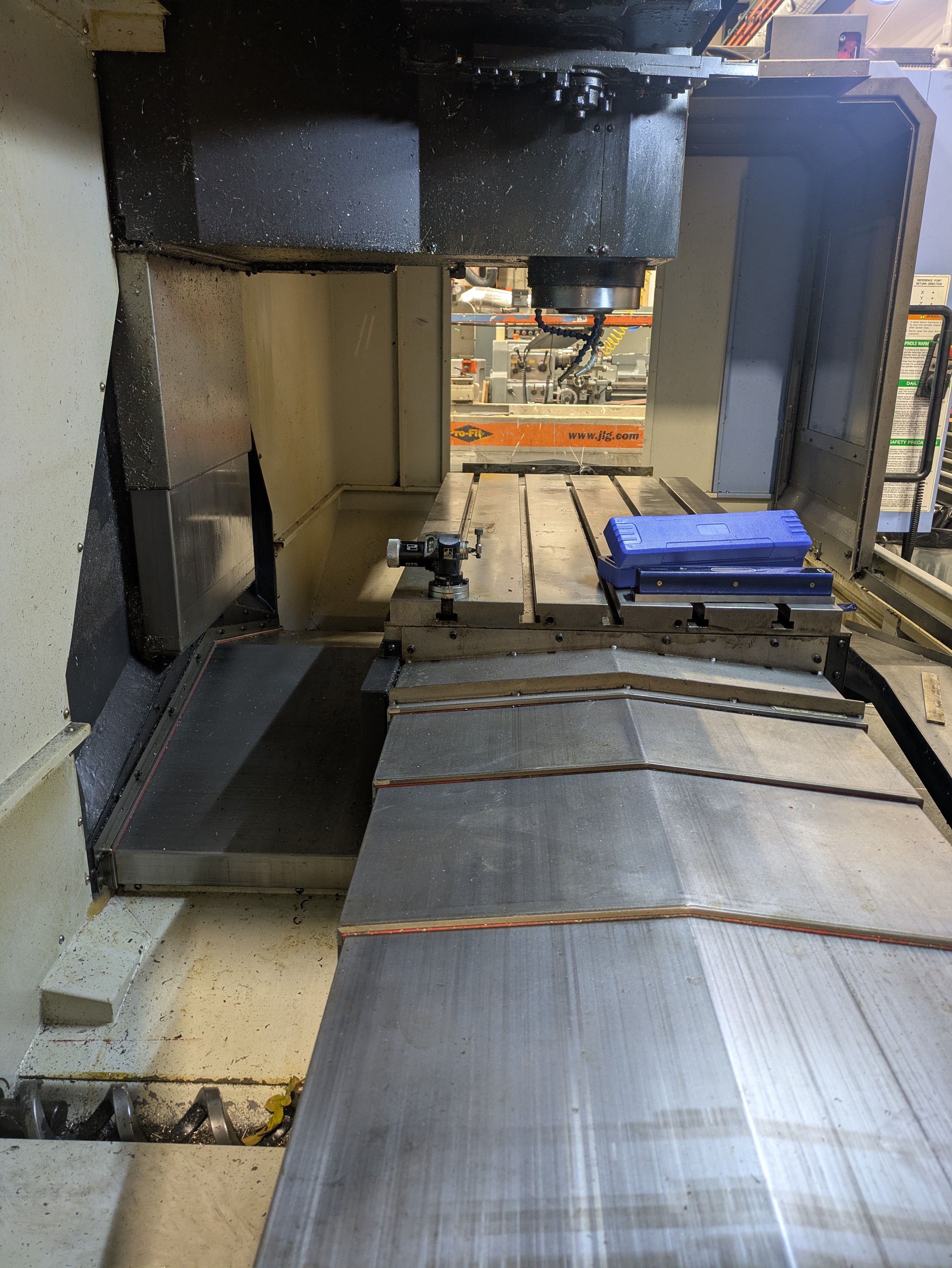 Although the “new” mill was state of the art in 2014, the controls feel like they’re from 1999. Getting it to run wasn’t as straight forward as our smaller mill. Sam couldn’t find enough useful information online and had to resort to the multi-volume library of manuals that came with the mill. Most were in English but they may as well have been written in Korean. Sam persevered. A few days later, after some more reading and internet browsing, Sam got it to run!