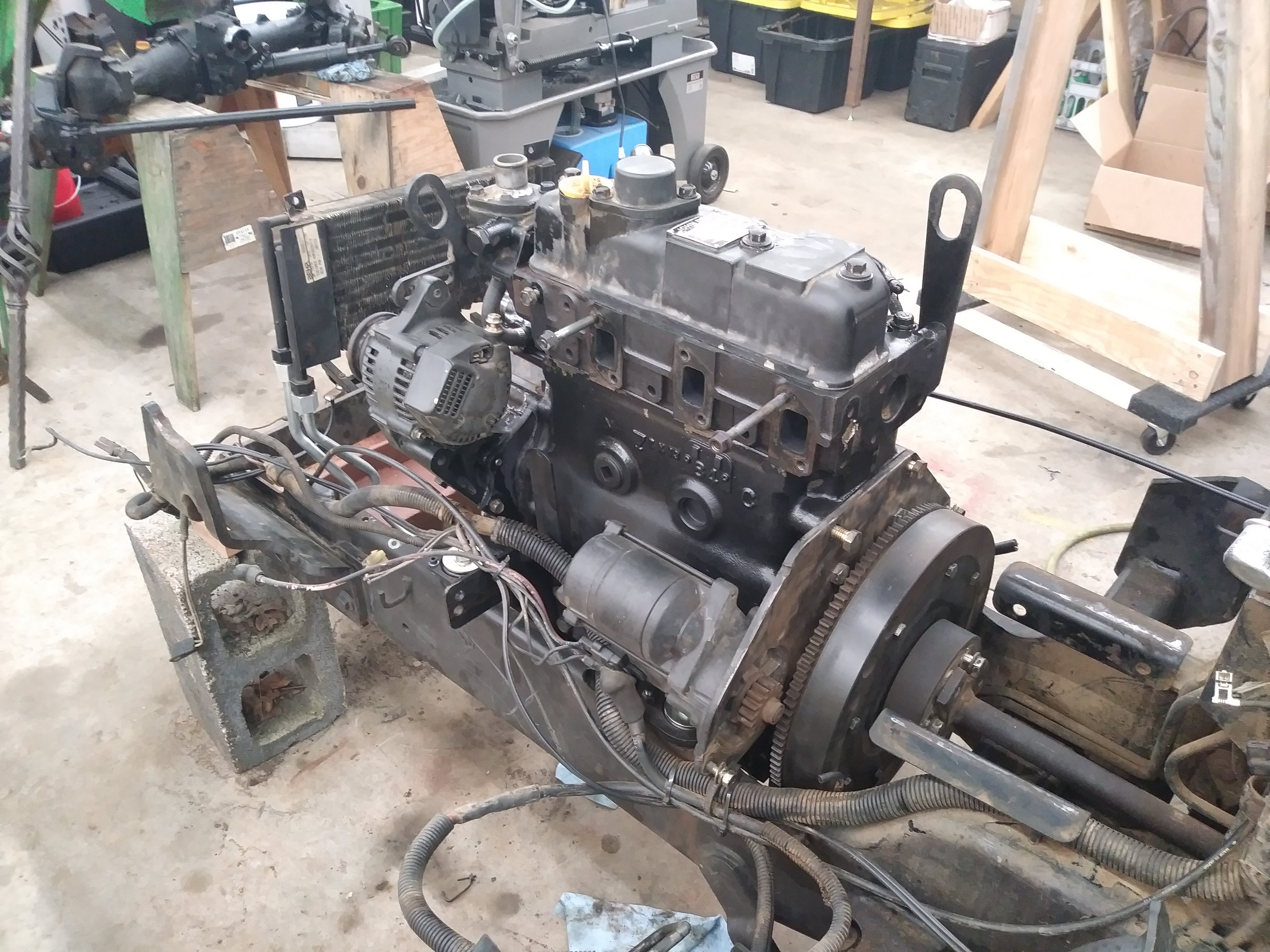 The Case 570 MXT is one of three Cases on the property. This is the youngest Case, from 1999. It has the largest bucket of the fleet, making it the ideal machine for moving large volumes of dirt. Its large back blade is great for road maintenance and leveling out wide areas. The loader is also capable of lifting heavy objects and unloading flatbeds with its forks. Attachments include a back blade with tines, a large bucket, and forks.